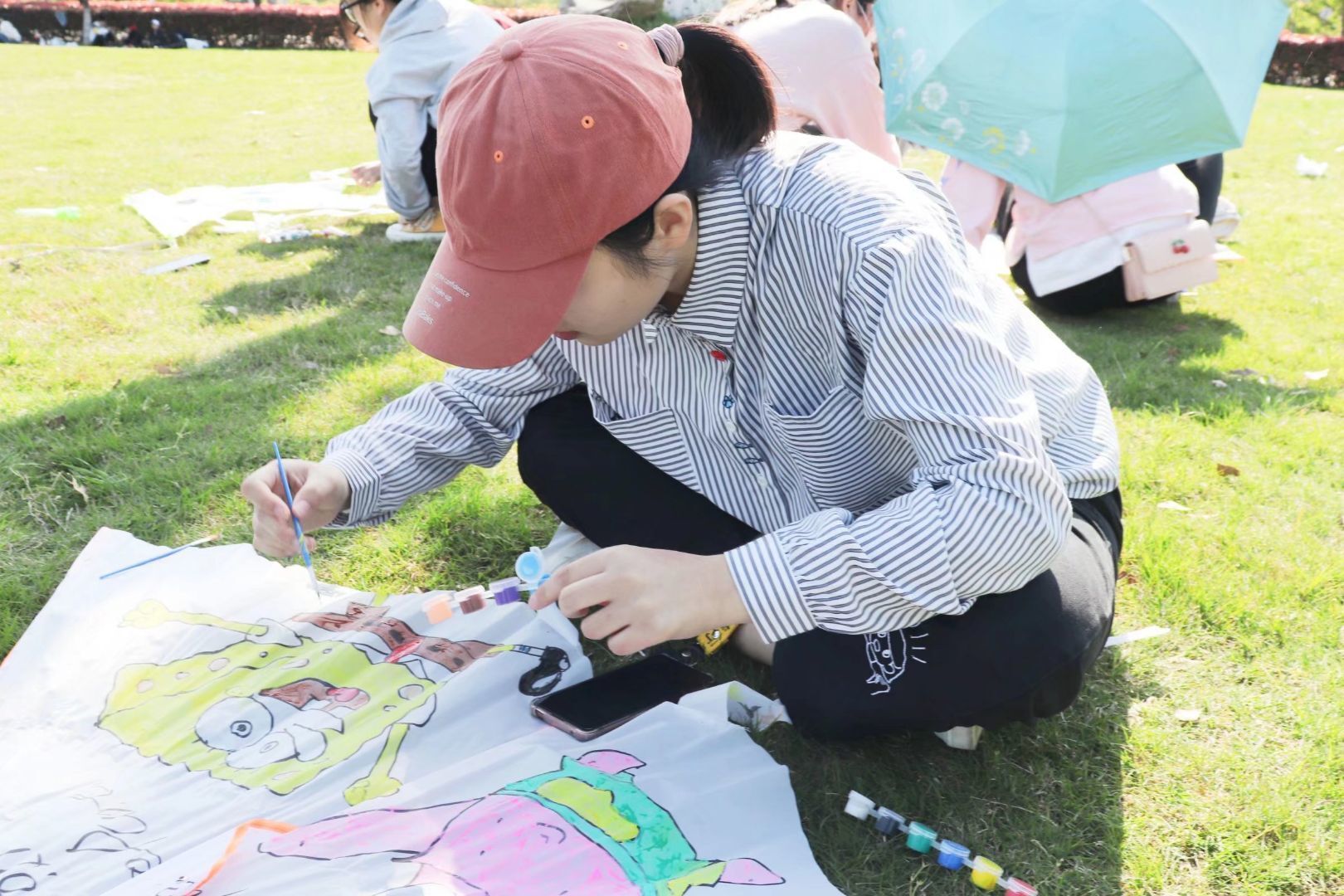 活动中全班同学分为三小组,以小组为单位DIY制作风筝。小组集思广益,热烈讨论设想风筝的图案。成员分工有序,有的涂鸦绘画,有的书写文字,每位同学都积极参与,乐在其中。看着亲手绘制的风筝随着春风在蓝天上飞扬,同学们脸上洋溢出灿烂的笑容,现场气氛活跃,一片欢声笑语。
