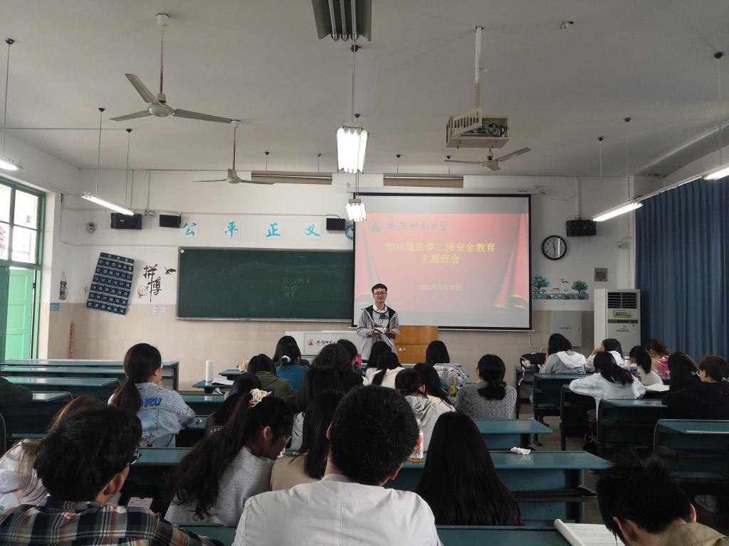 本网讯(英国上市公司365 张楠楠、张雯)4月28日上午,2018级法学专业在教学楼召开了劳动节安全主题班会,班会由2018级法学专业辅导员张楠楠主持,全体同学参加。