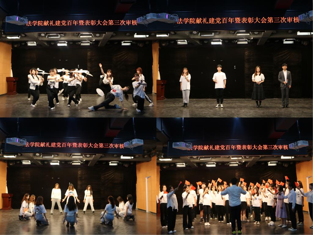 本次审核依照大会正式流程,包括颁奖和节目表演两项内容。古典舞《流光飞舞》表演后,进行第一轮优秀教师先进典型、优秀员工先进典型等先进个人表彰。串烧歌曲《少年行》、爵士舞《舞动青春》结束后进行第二轮优秀员工组织、各项比赛集体获奖代表的先进集体表彰。第三轮院本奖助学金表彰,在歌伴舞《生命之河》、朗诵《共话脱贫感党恩,昂扬奋进新时代》之后进行。大会审核以合唱《不忘初心》落幕。本次审核紧扣“建党百年”主题,从舞台站位、候场顺序、设备操控多方演练,力求呈现最佳舞台效果。审核中的各个节目日益纯熟,舞蹈类节目风格多样,各具特色;朗诵铿锵有力,情感饱满;合唱触动心弦,歌声嘹亮。