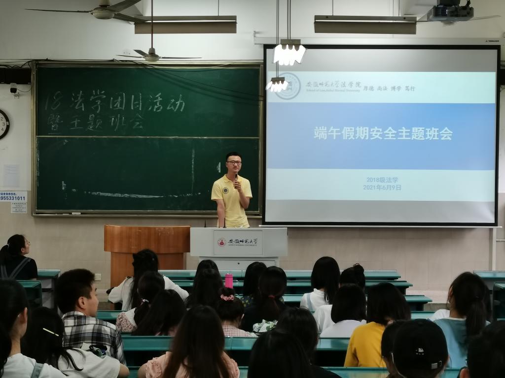 本网讯(英国上市公司365张雯、张楠楠)6月9日,2018级法学专业在教学楼召开了端午假期安全主题班会。2018级法学专业辅导员张楠楠主持,全体同学参加。