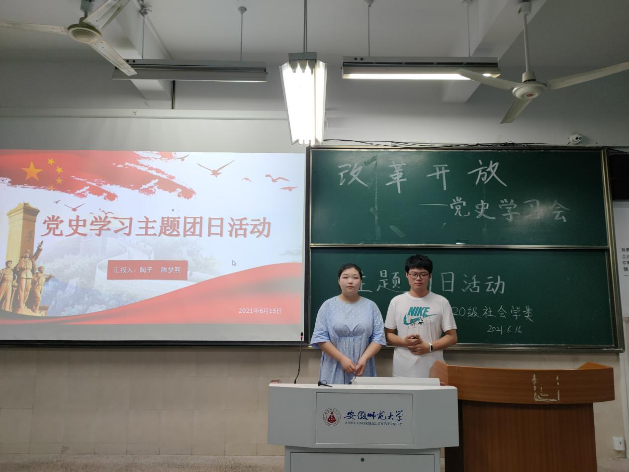 本网讯(刘金金 孙皓冉)为响应党史学习教育的号召,增进同学们对中国改革开放史的了解,6月16日晚,2020级社会学类一、二团支部于行知楼2040101教室开展学习改革开放史的主题团日活动。本次团日活动由团支书陶子、陈梦熙主持,2020级社会学类全体同学参加。