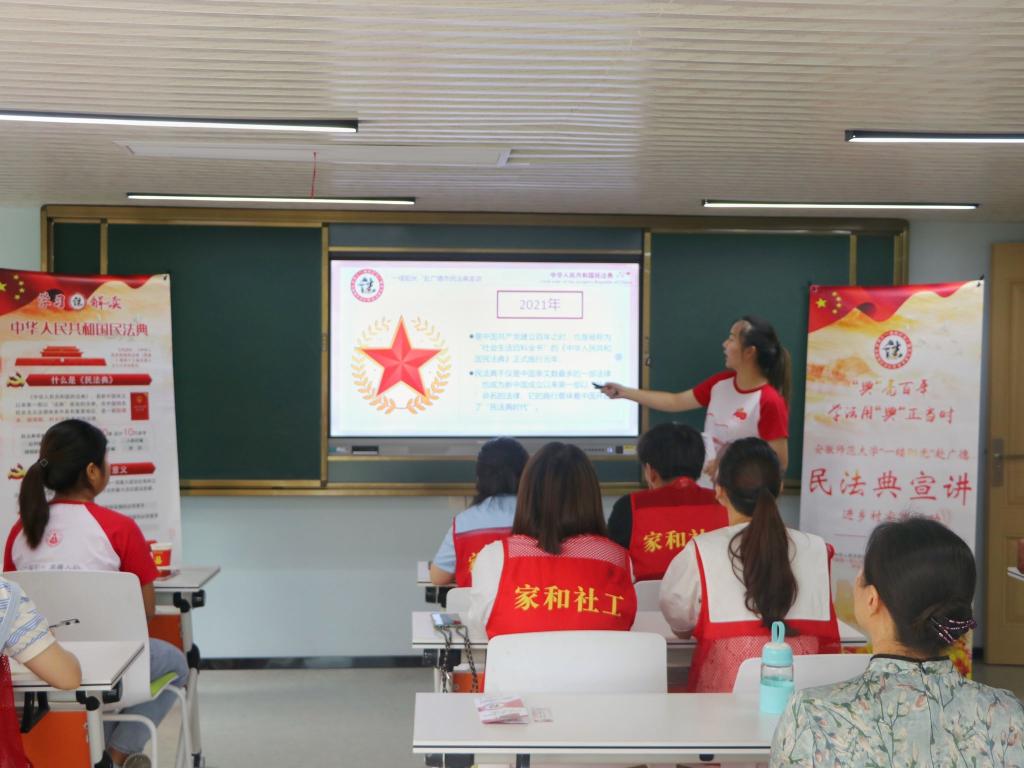 扩大普法覆盖面,入基层进行法治宣传。结合法学专业特色,公司学子奔赴各地乡村、社区、公司、企业、机关和单位开展民法典普法活动。面向留守老人、社会工作者、青少年儿童等群体,实践团队围绕民间借贷、未成年人保护、电信诈骗、机动车交通事故等方面进行法律知识普及。宣讲员们以案释法,以通俗易懂的语言讲解案例和法条,让《民法典》这部“社会生活的百科全书”真正走近群众身边,走入群众心里。
