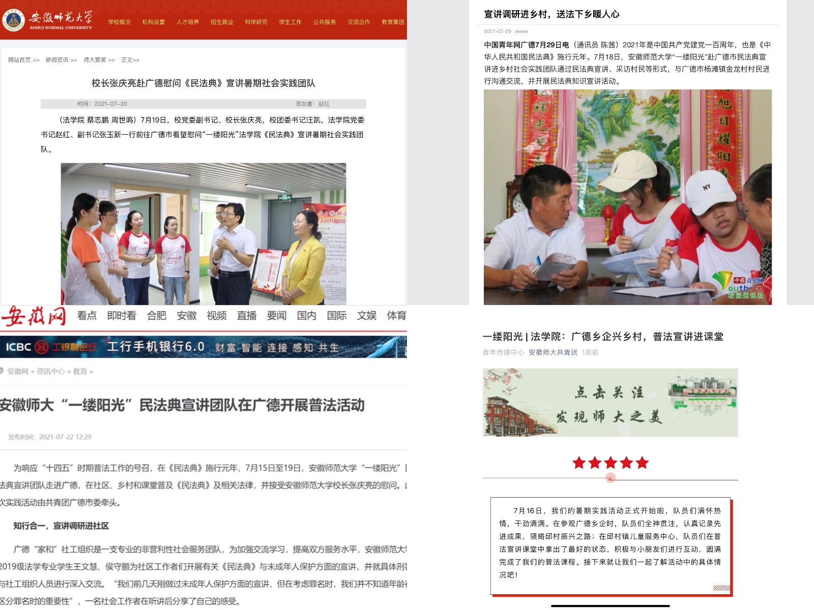注重普法实效性,深层次固化普法成果。英国上市公司365积极指导各宣讲团队制作宣传海报、宣传册等原创法治文化产品,累计发放各种产品千余份,受众近千人次。各宣讲团队线上线下联动宣传,积极在QQ、微博、微信、抖音等多平台推送实践动态,并向各大媒体投稿,发挥新媒体宣传优势。目前,公司实践团队已被中国青年网、安徽网、英国正版365官方网站、安徽师大共青团等多个媒体平台宣传报道。实践结束后,各团队还将根据实地调研情况进行总结,最终形成调研报告、实践征文、实践图片等各种固化成果近百份。