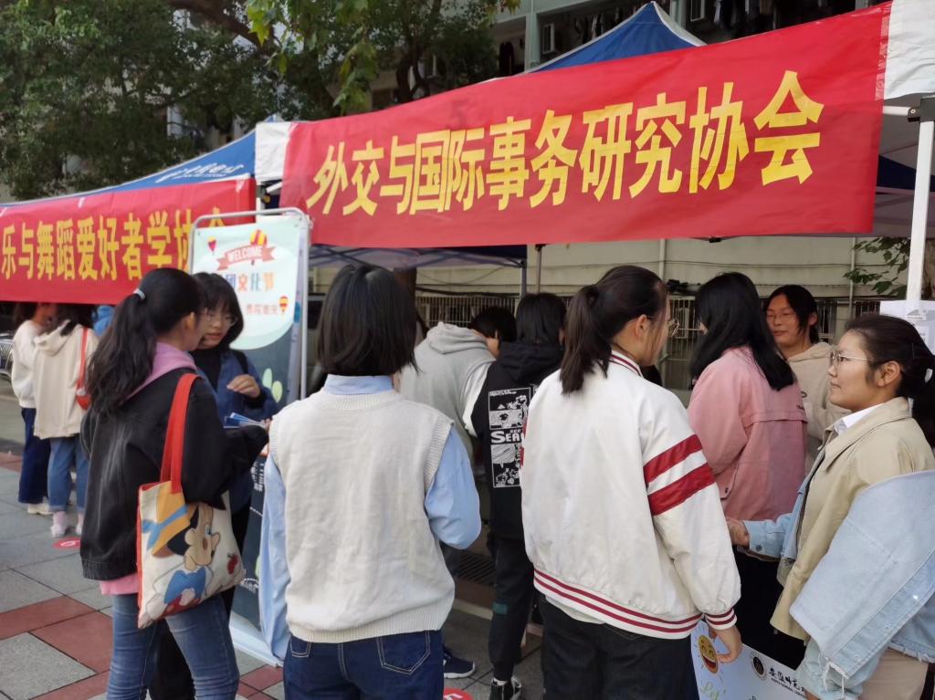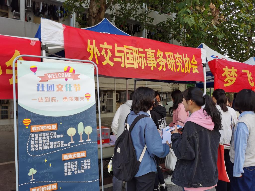本网讯(外交与国际事务研究协会 王奕骁)10月18日,外交与国际事务研究协会分别于花津校区和赭山校区开展社团招新暨社团文化节活动。本次活动由会长郭馨、副会长闫园园、蒋亦菲组织,各部门负责人协助展开。