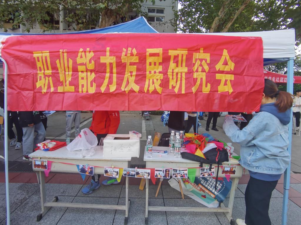本网讯(职业能力发展研究会 戴欣冉)为丰富广大学子的课外生活,提高老员工综合素质,职业能力发展研究会于10月17日在花津校区西门广场48号展台和赭山校区1号展台开展了2021-2022学年社团招新暨社团文化节活动。本次活动由会长包文静、副会长程杰组织,各部门负责人参与布置。