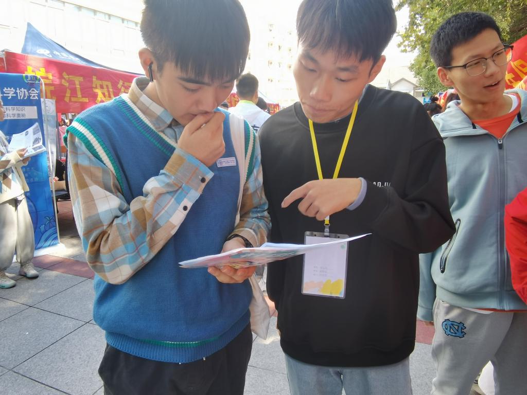 活动开始前,社团全体工作人员提前到达展台开始进行桌椅摆放、会旗悬挂和宣传海报粘贴等准备工作,为社团招新和“一站到底”社团文化节活动做了充足的准备。八点活动准时开始,各个部门成员各司其职,分散在各个地方进行宣传。通过线下宣传单发放、线上官Q说说运营等方式,社团工作人员向大家详细介绍了本社团的宗旨、部门设置、部门工作安排以及开展的精品活动和平时社团活动等相关内容,以饱满的热情为前来咨询的同学们答疑解惑。与此同时,“一站到底”社团文化节活动也正在火热进行中,同学们都积极参与活动,在赢得奖品的同时,也增长了知识。在本次活动过程中,工作人员们认真负责、配合默契,为每一位前来报名和参加活动的同学提供了优质的服务。在大家的共同努力下,职研会成功招收近百名会员,出色地完成了工作目标。晚上六点整,活动顺利结束。