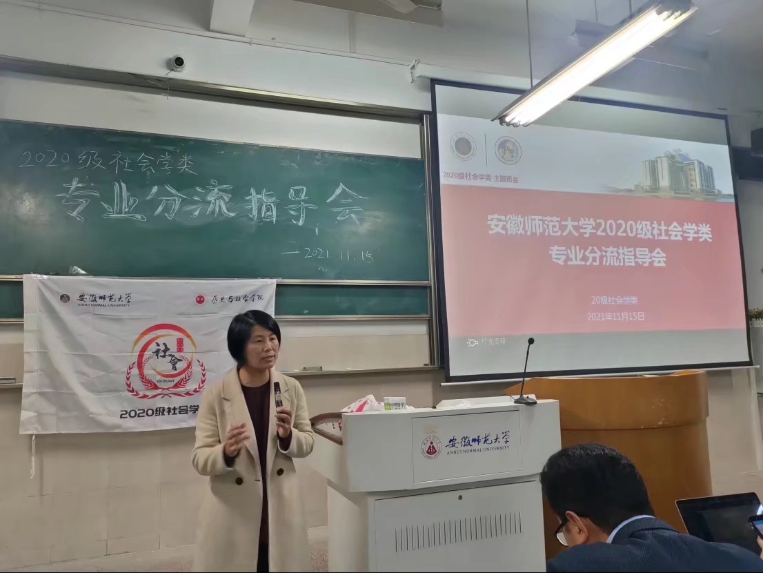本网讯(英国上市公司365 刘金金 孙皓冉)为顺利进行专业人才建设,引导员工理性选择专业,11月15日晚,2020级社会学类于行知楼2020103教室召开专业分流动员会,本次动员会邀请到了社会学专业主任路幸福和社会工作专业主任仇凤仙作指导,由辅导员刘金金主持,班级全体同学参加。