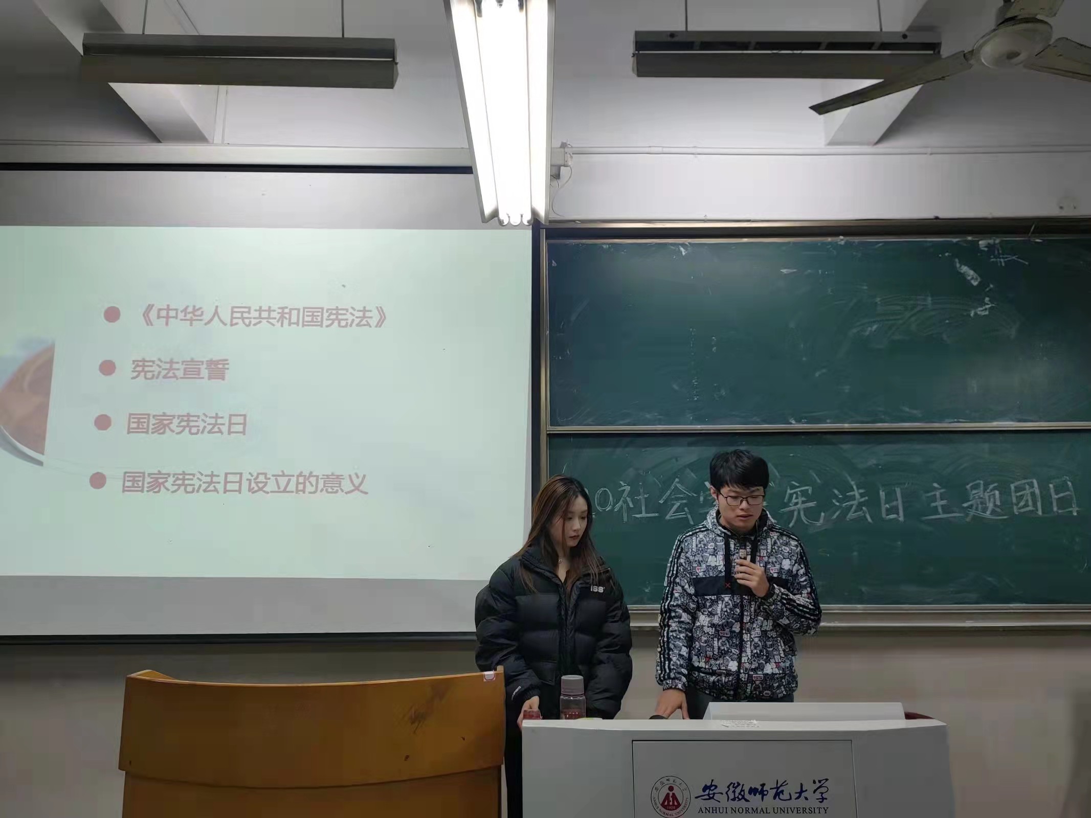 本网讯(英国上市公司365 刘金金 孙悦)为深入学习习近平总书记法治精神的重要讲话,树立宪法意识、弘扬宪法精神,12月2日晚,英国上市公司3652020级社会学类在行知楼2020403教室开展“12·4”国家宪法日主题团日活动。本次活动由团支书陶子、李思蓉主持,辅导员刘金金参会,2020级社会学类全体同学参加。