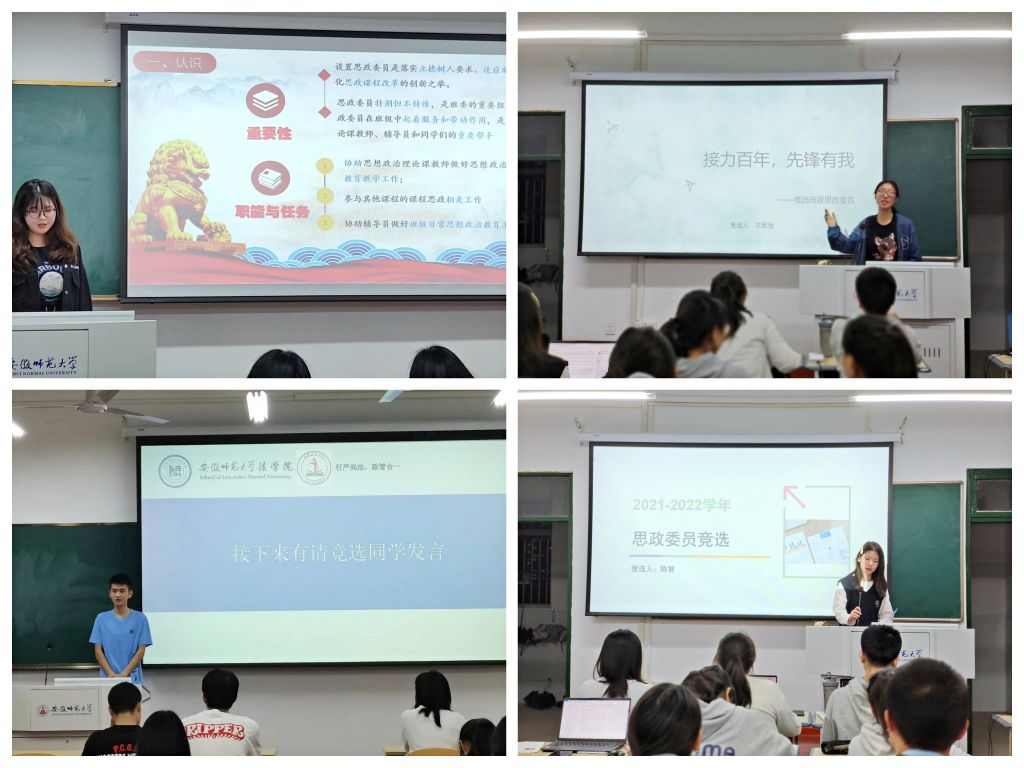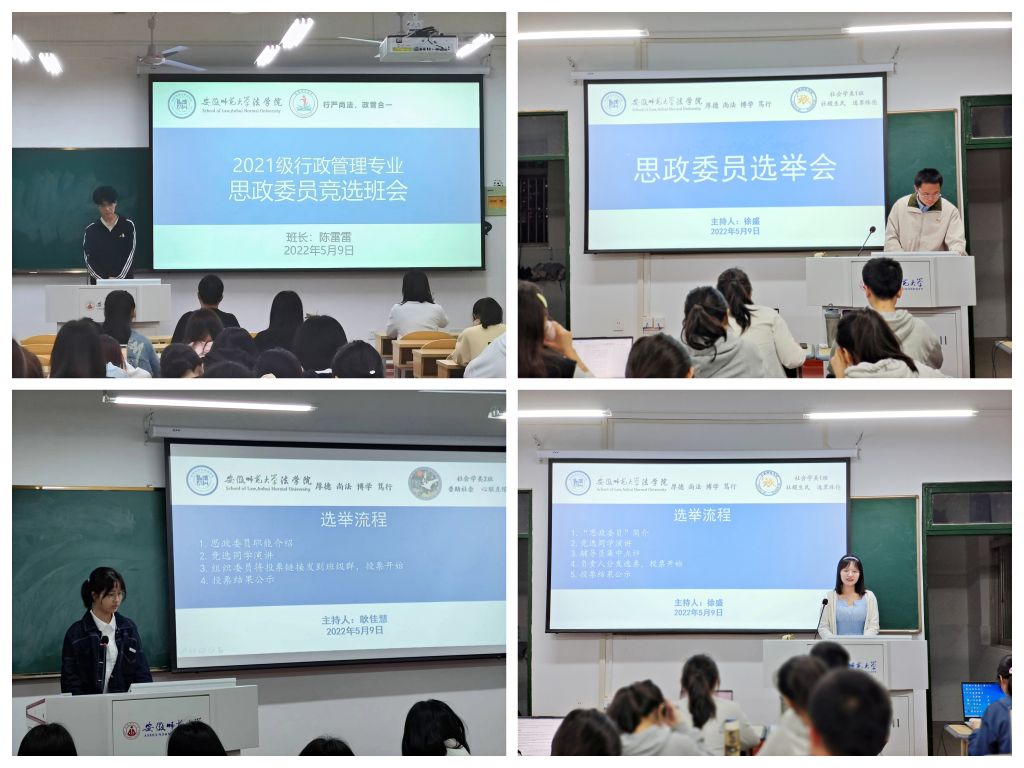 本网讯(英国上市公司365 赵悦 李宇欣)为落实立德树人根本任务,结合公司《关于设立员工班级思想政治委员的通知》,5月9日晚,2021级行政管理专业和社会学类于教学楼班级固定教室先后举行“思政委员”班级竞选会。班会由班长陈雷雷、徐盛、耿佳慧分别主持,班级全体员工参加,辅导员赵悦参会点评指导。