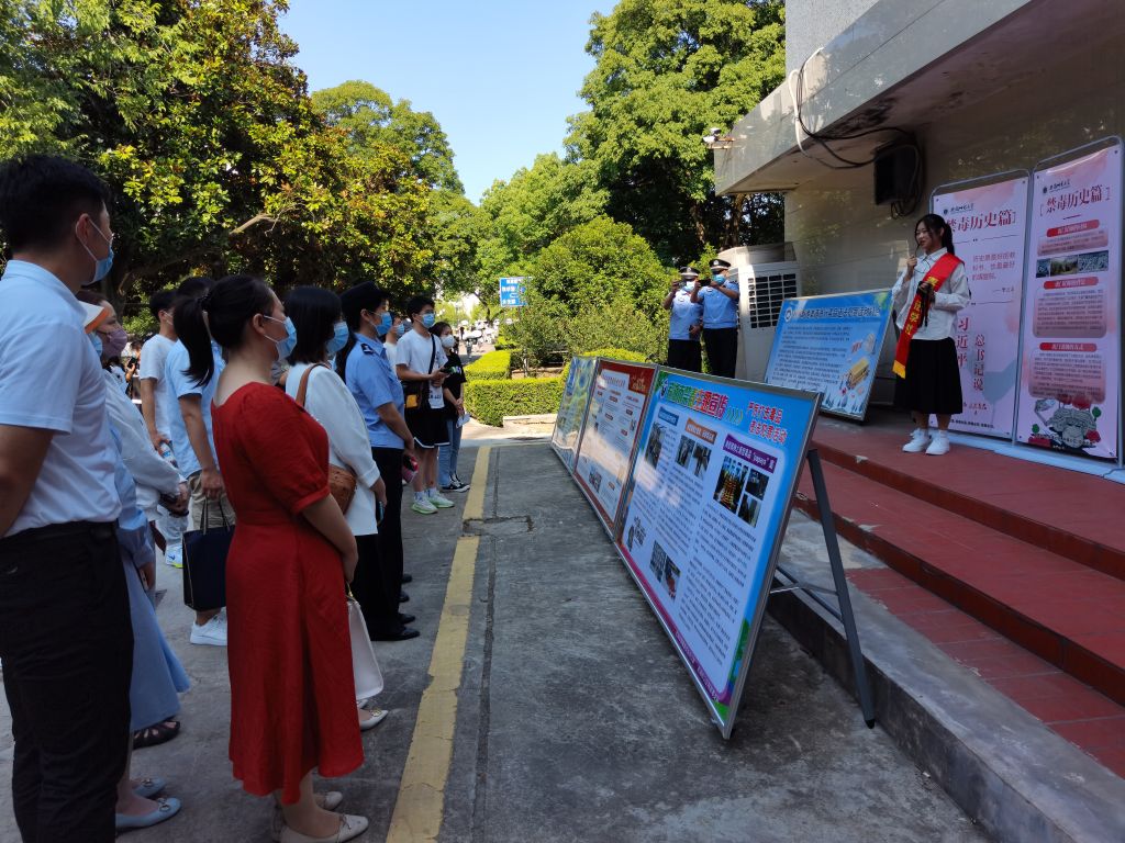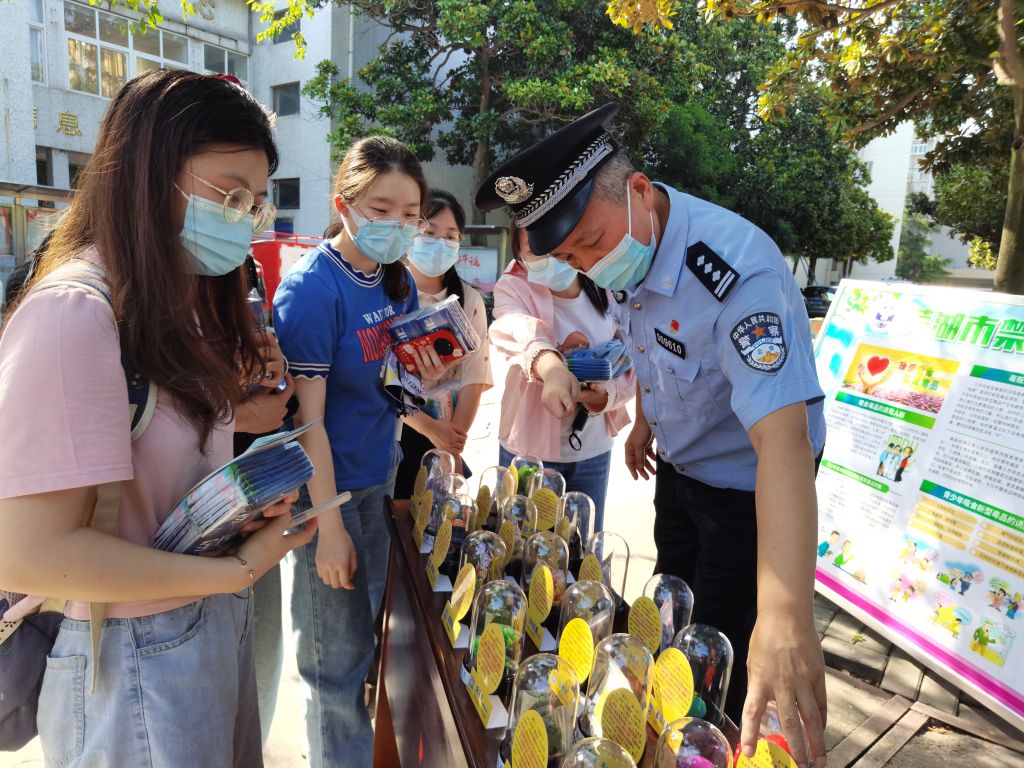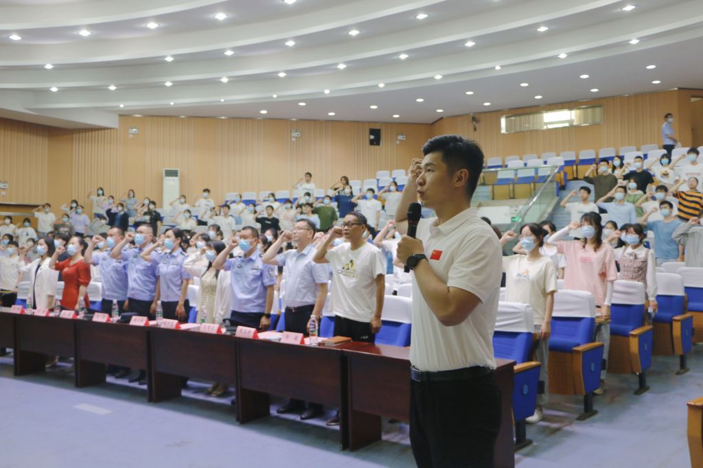 最后,2021级卓越司法班张君宇同学作为员工代表朗读了《禁毒倡议书》,蔡志鹏带领全体人员进行禁毒承诺宣誓,并播放省禁毒委、省团委相关负责人的致敬寄语视频。会议结束后,参会师生移步室外,聆听宣传员关于展板及毒品模型的讲解,参加横幅签名等活动。