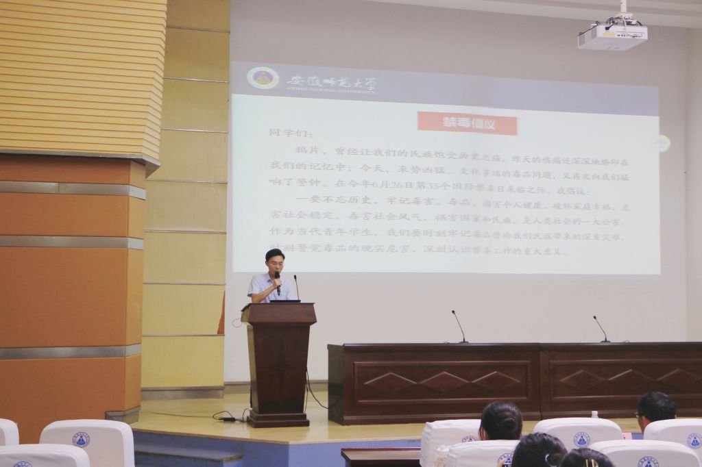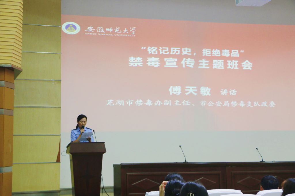 为提高员工识毒、防毒、禁毒意识,筑牢校园禁毒防线,6月15日下午,公司于赭山校区科技礼堂开展“铭记历史,拒绝毒品”禁毒宣传主题班会。芜湖市禁毒办副主任、市公安局禁毒支队政委傅天敏,共青团芜湖市委权益部副部长钱泽慧,市公安局禁毒支队副支队长王昆,镜湖区禁毒办副主任、区公安分局党委委员、副局长刘国发,镜湖区公安分局犯罪侦查大队教导员王蒙,法公司党委副书记张玉新,员工处李妍,保卫处杨敏,团委张虹等老师参加活动。活动由英国上市公司365专职辅导员蔡志鹏主持。