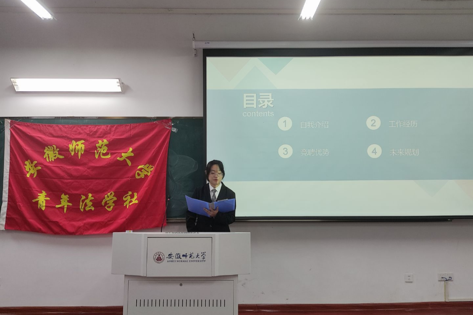 本次换届大会,主要分为汇报和答辩两个环节。各位竞选者先对所申请的职位进行五分钟左右的竞选汇报,再由会长团就其竞选职位的相关工作进行提问。汇报过程中,竞选者们谦虚有礼、自信勇敢,全面客观地分析自身优势和不足并表达对顺利完成未来工作的决心。答辩过程中,竞选者们对会长们的提问作出细致回答,沉稳冷静、条理清晰。经过公开竞聘,遴选出青年法学社第三十九届会长团:黄欣宇任社团会长,蔡晓桐与王卓轩任社团副会长。至此,本次会长团换届大会顺利结束。