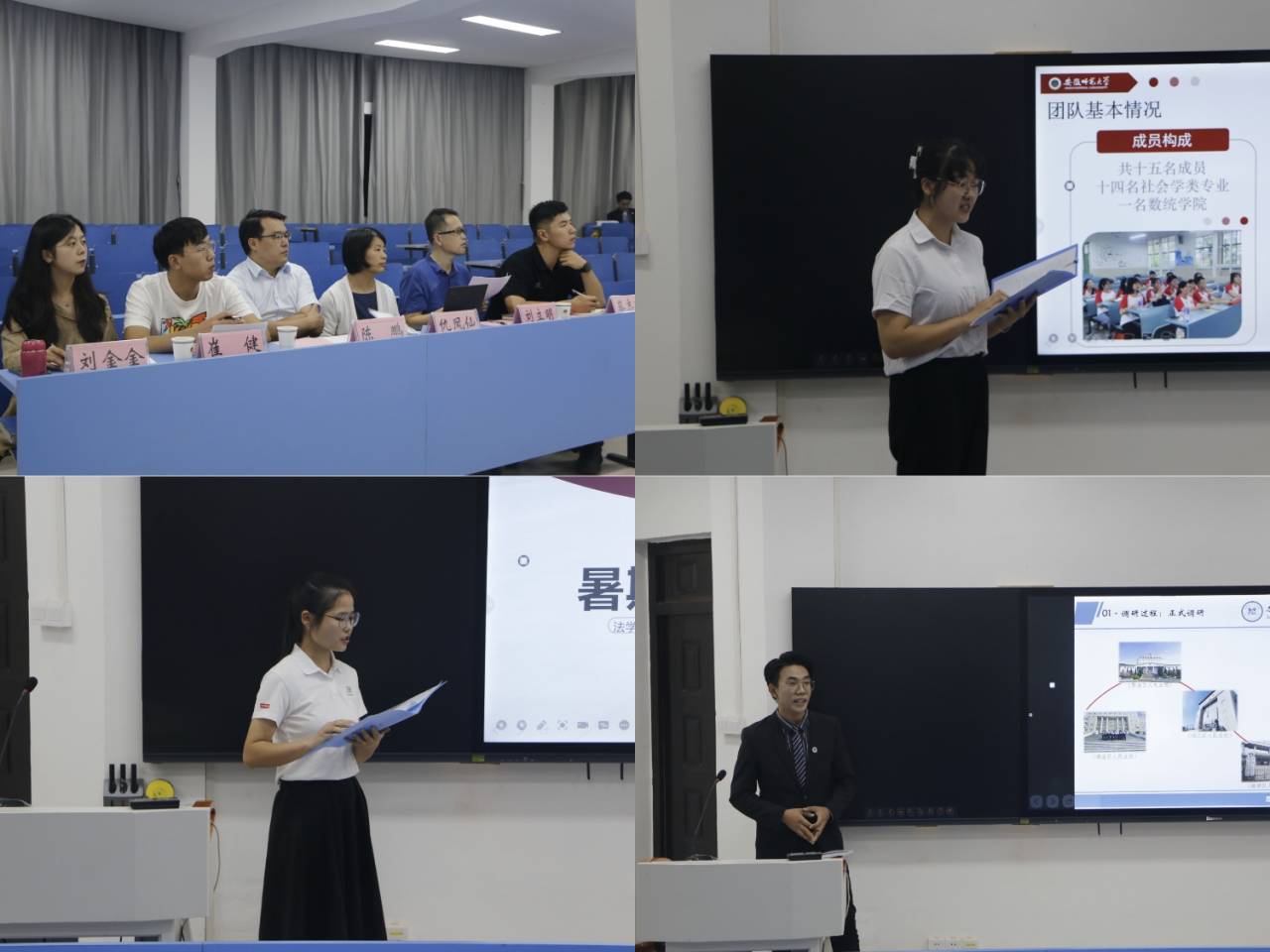 此次分享会共有14支队伍参加,各队代表根据实践项目,围绕前期准备、实践过程、成果展示、宣传成就等多方面进行汇报。实践团队的项目选题涉及普法宣讲、乡村振兴、红色事迹、劳动教育、社区活动等多个模块。汇报人使用图文与影像资料还原社会实践概况,使人身临其境,汇报到精彩之处更是引起听众阵阵掌声。各团队走进基层与社会,以实际行动为社会建设奉献青春力量,并在此期间切身体会国家政策,实现团队与个人的共同进步。汇报结束后,蔡志鹏作总结发言,他对各位同学的付出和成长做出肯定,希望各实践团队再接再厉。他指出暑期社会实践是检验与提升所学经验知识的平台,更是同学们了解社会、增强感情、促进交流的宝贵平台,建议大家把握机会改进不足,以获得更多经验。