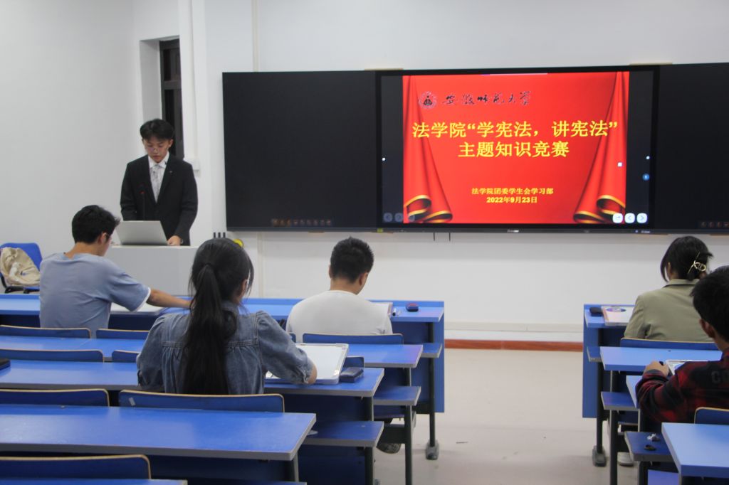 经过班赛与院级初赛两轮选拔,共7名同学进入决赛。院级决赛以回答选择题和判断题的形式开展,题目主要涉及党史知识、宪法沿革、守法意识等内容,考查了同学们对宪法明文规定的理解,对国家机关职能以及对宪法精神等方面的认知。比赛现场,选手们沉着冷静,思虑周全,反应迅捷,计时结束后,正确答案不断在白板上涌现。五号选手与七号选手因得分相同进入决赛加赛环节,展开最终角逐,对难度更大的题目发起挑战。本次比赛展现出同学们扎实的学术功底,各位选手通过答题对宪法知识进一步深入学习,获得成长。据悉,本次主题知识竞赛的获胜者将代表公司参加安徽省“学宪法 讲宪法”活动。