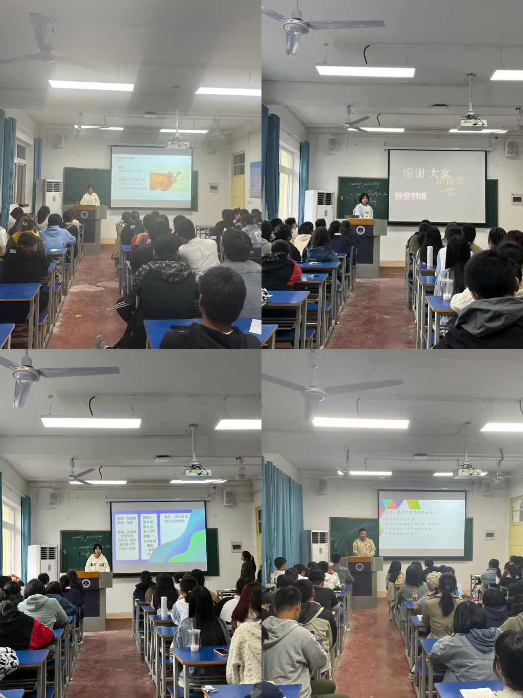 辅导员朱慧简单地介绍了竞选的职位、规则及流程。随后,各位竞选人通过PPT演讲汇报,从个人介绍、工作经历、竞聘优势、工作规划等几个方面一一展开,现场气氛愉快而热烈。班委竞选者认真负责、积极努力的工作态度和亲切、热情的发言内容掀起了班委竞聘会的高潮。在各班级竞选人结束竞聘后,全班同学开展无记名投票。随后,各班级根据投票结果、竞选表现、平时表现等方面综合确定班委名单并进行公示。