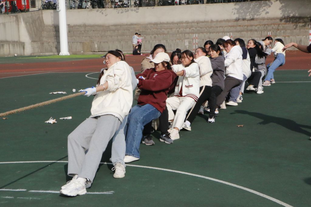 比赛举办前,各班同学积极参与,经过选拔挑选,确定最终的参赛队伍。拔河比赛场地上,工作人员首先向选手们详细介绍比赛规则,强调场地纪律和注意事项,各班指导人员进行战略和队形部署。随着工作人员一声哨响,比赛正式开始。参赛队员齐心协力,抓紧拔河绳,重心下压,全力以赴。 “一二、一二!”整齐的口号声凝聚起整支参赛队伍。观赛的同学也个个热情高涨,为各自班级加油助威,欢呼声将赛事推至高潮。赛后,工作人员组织各班级有序退场。