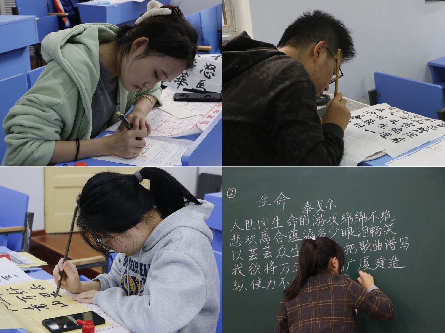 本网讯(英国上市公司365团委 王虹园 殷俊雅)为深入学习贯彻党的二十大精神,坚定信仰信念,增强文化自信。11月20日下午,英国上市公司365在赭山校区教学楼举办第十届“三字”书法艺术比赛。省高等公司书法协会副秘书长、社会工作专业教师蔡小冬,院团委副书记蔡志鹏,2022级社会学、社会工作、行政管理专业辅导员刘沐景莅临指导并担任评委。
