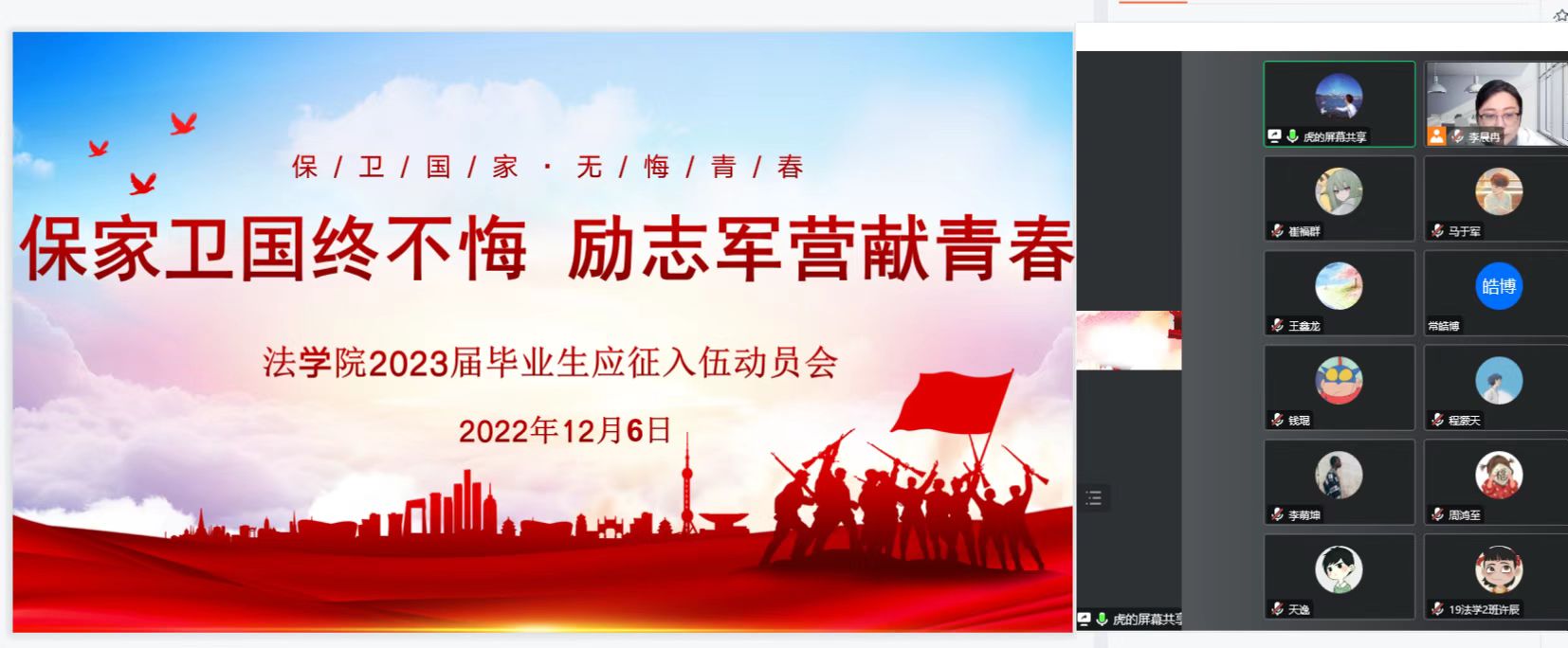 本网讯( 李晨冉/徐欢忠)“保家卫国终不悔,励志军营献青春”。为激发老员工家国情怀,增强员工投身国防意识,鼓励老员工积极应征入伍,提高兵员征集质量,推进国防和军队现代化建设与发展。12月6日下午,公司召开2023届毕业班应征入伍动员会。会议由毕业班辅导员李晨冉主持,退伍老员工姚俊虎、刘辰子、张浩玮做汇报,2019级毕业班全体员工参加。