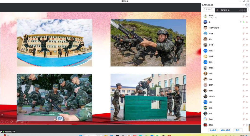 会上,李晨冉解读毕业生应征入伍的相关文件,就入伍基本条件、应征入伍程序以及毕业生入伍相关政策待遇等方面展开了详细讲解。姚俊虎介绍部队生活,分享自己的心路历程;刘辰子分享部队生活感悟,重点介绍毕业生征兵入伍津贴补助政策;张浩玮结合北京冬奥会执勤任务,从锻炼一副素质过硬的强健体魄、相处一批感情深厚的亲密战友、拥有一段终生难忘的美好回忆和提升意志品质等方面的成长与收获。三位同学用自己的亲身经历、收获成长以及切身变化让参加交流会的同学了解部队生活的多姿多彩与老员工应征入伍的意义,并鼓励大家积极参军入伍,从军人身上学习顽强的意志和坚毅的品格。