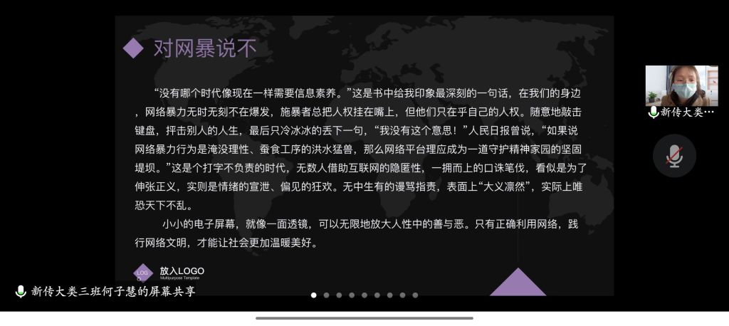 在主持人张淑雅提出本次活动的主题和比赛规则后,比赛正式开始。本次比赛主要以PPT汇报形式举行,根据参赛选手比赛表现进行名次评比。在汇报结束后进行答辩环节,在答辩过程中评委老师以提问的形式与参赛选手进行交流讨论。21名参赛选手围绕当下法律热点依次演讲,分别从“明星、网红等偷税漏税、疫情期间恶意囤积、哄抬物价、牟取暴利、河南一老师遭遇‘网课爆破’不幸去世、法律判决与社会舆论两者如何寻求平衡点”等热点问题发表自己独特的见解和观点。在所有选手完成汇报后,韩瀚对他们的表现给予了赞美和肯定,并表示本次比赛不必看重名次,重要的是从比赛中收获的经历、成长以及感悟比赛本身所要传递的正能量。陆在春同样对参赛选手们的精彩表现表示赞扬,同时他也对选手们提出了相关比赛建议,使选手们受益匪浅。待主持人宣布活动结束后,本次活动落下帷幕。