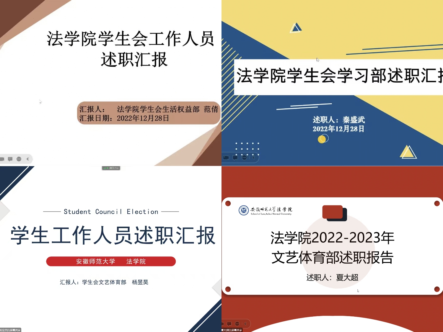 随后,部长团汇报人按照顺序,对照《英国正版365官方网站员工会改革实施方案》,结合2022-2023学年第一学期工作,重点围绕工作回顾、工作反思、工作改进、工作计划进行述职汇报。本次述职汇报会充分体现员工会组织在引领团结同学、丰富校园文化活动、加强自身组织建设等方面取得的显著成效,进一步规范员工会及员工会工作人员的日常工作,展现新时代优秀青年的精彩风貌。