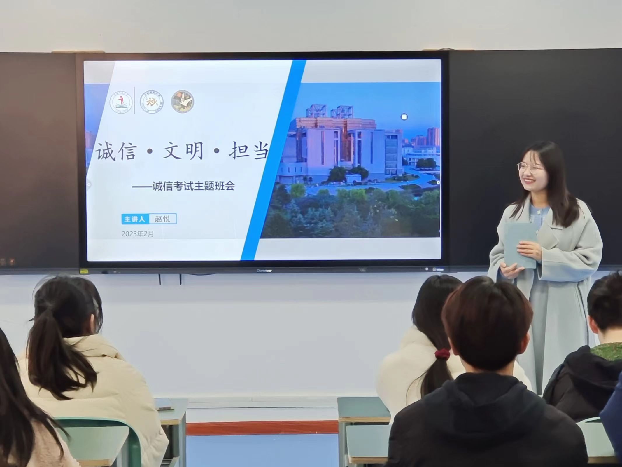 赵悦首先从“诚信”和“做人”的关系角度引入,古往今来都是守信者名垂千古、失信者寸步难行,教导大家在学习中坚守底线、严格自律、诚信应考,在生活中守信践诺、以诚立身,把社会主义核心价值观融入到我们的课堂学习与日常生活之中,用一生书写诚信答卷。之后她向大家讲述了诚信考试的具体内容,并列举了因考试作弊而受到校规处分的真实案例,向同学们展示了关于考试作弊的各种危害和沉痛代价,告诫同学们要认真复习、加强交流,让讲诚信成为班级每一位同学的自觉行动。会后,赵悦针对分流后班委会的成员调整和职责分工进行切实的解答,希望班委成员们能够以身作则、认真负责。