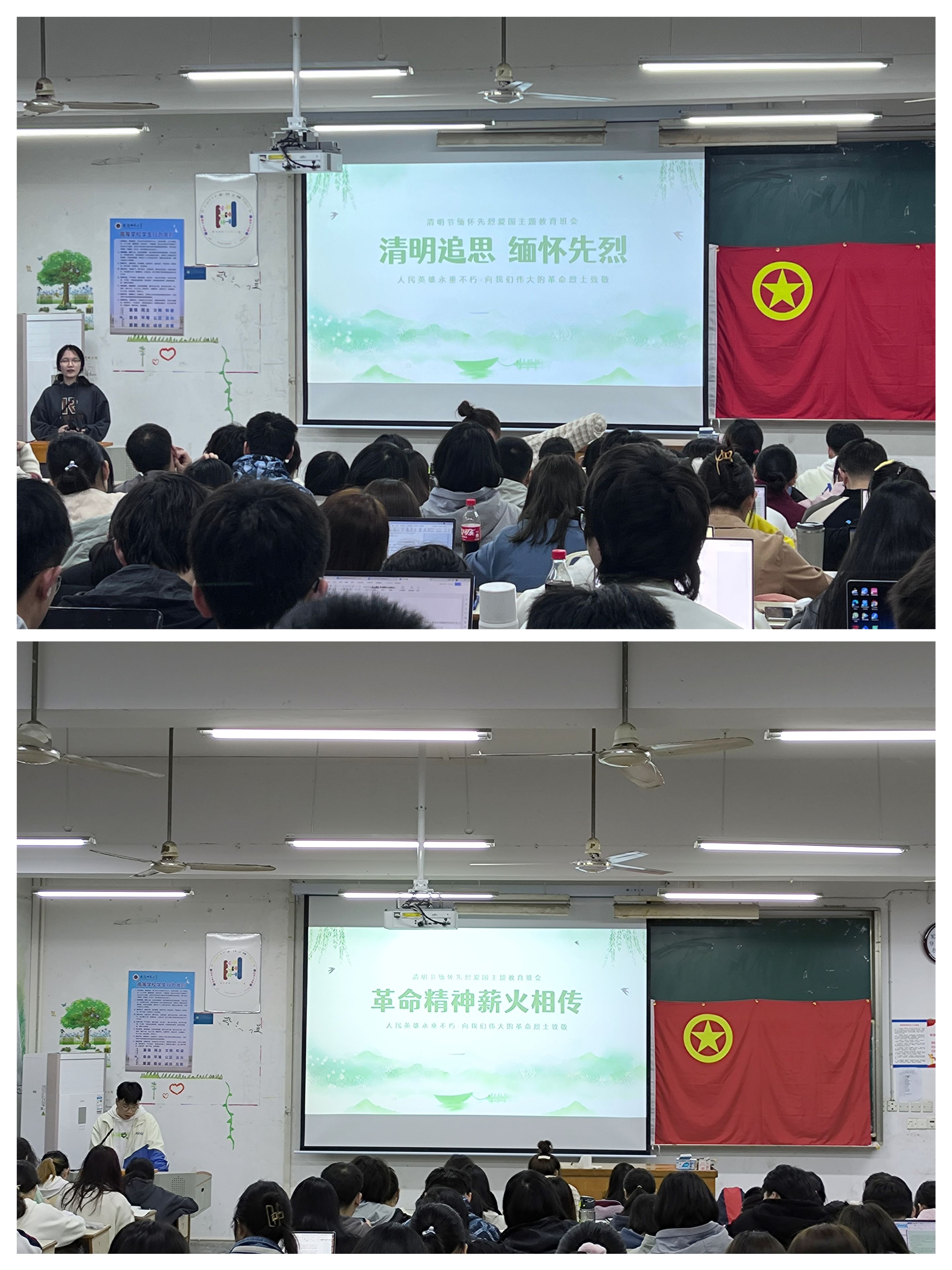 精神永不褪,丰碑励青春。4月5日,两班开展“清明祭先烈”主题宣讲活动。宣讲从清明节的由来,缅怀革命先烈和传承革命精神等三方面展开。宣讲强调,今天的幸福生活是无数仁人志士和革命先烈抛头颅、洒热血、用他们的青春和生命换来的。每一次对他们的缅怀,都是一次思想的洗礼;每一次对他们的致敬,都是一次精神的传承。