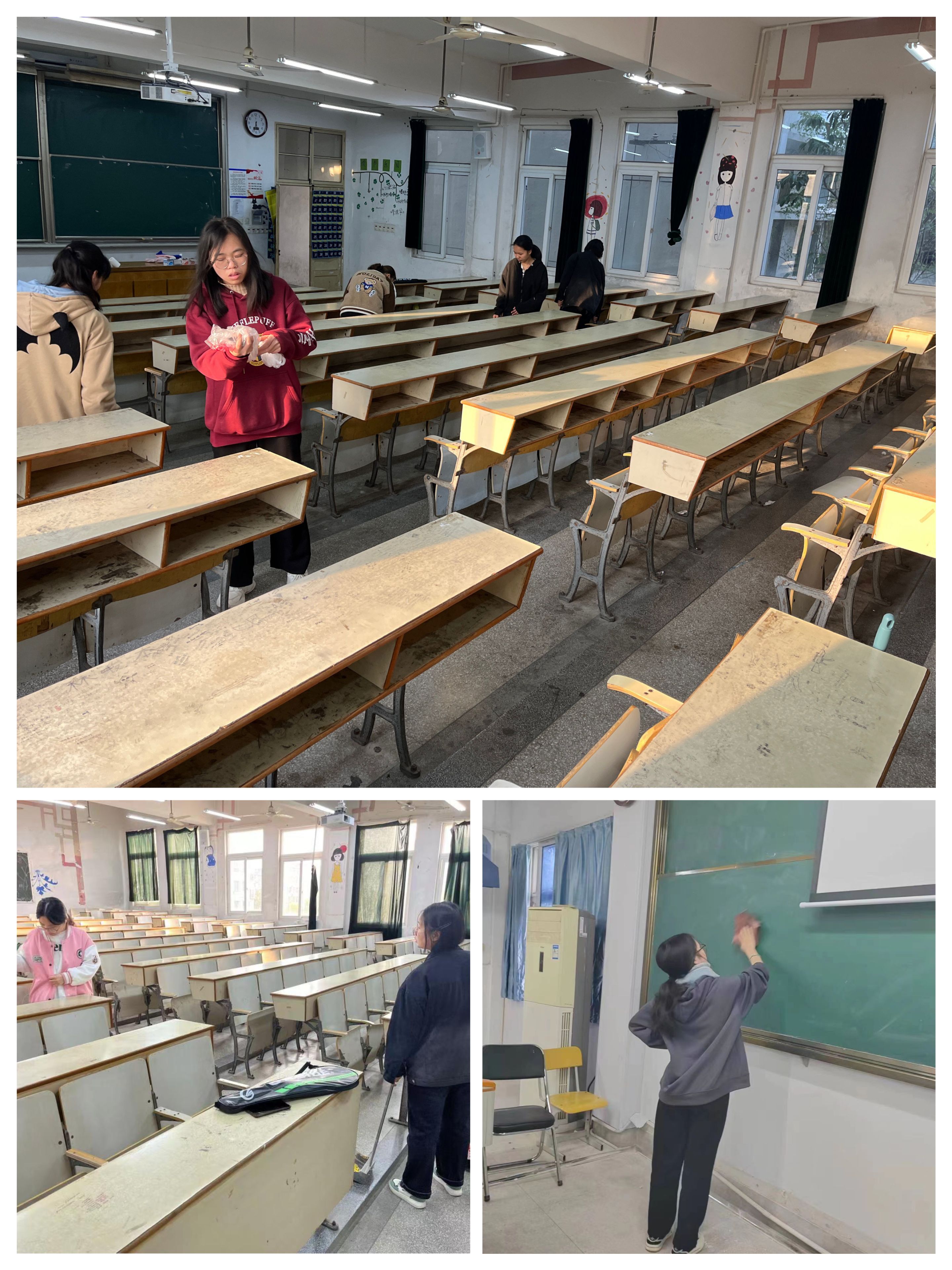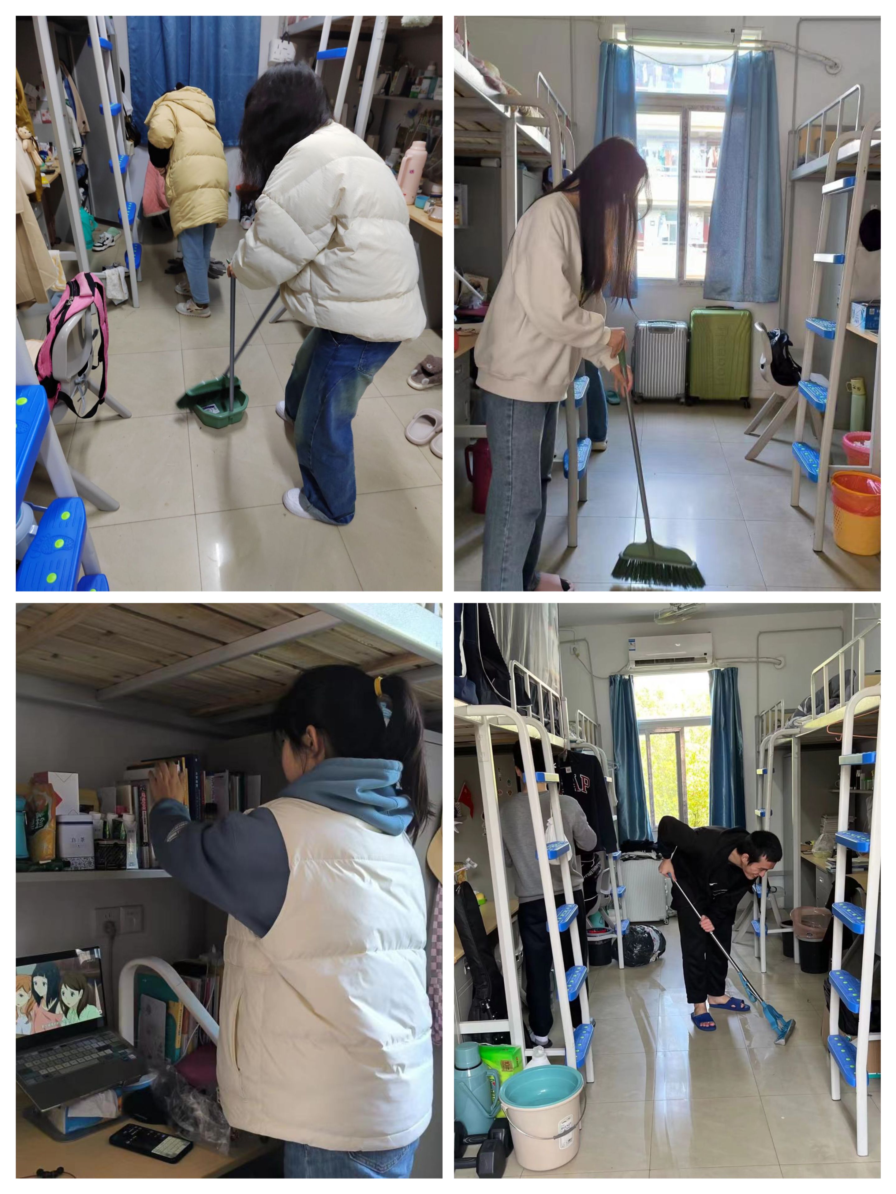 结合自身实践,共建绿色家园。4月7日,两班开展整理寝室内务,打扫公共区域等环境卫生实践活动。员工按照分组对个人寝室和公共教室进行整理和打扫,在全体同学的共同努力下,校园重现整洁。本次活动倡导员工结合自身实际,将“国际卫生日”的理念落到实处,从而更好地领悟讲究卫生的重要内涵,有利于员工树立正确的卫生观念,携手共创绿色家园。