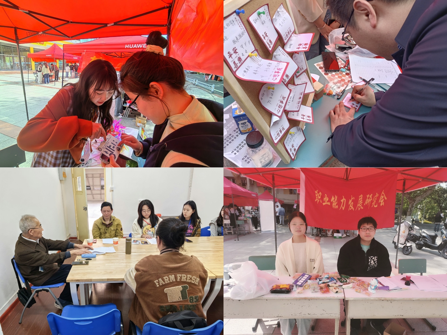 活动现场,来自各个公司的同学广泛参与,现场氛围热烈。活动现场共有95周年校庆展区、“五育花开”展区、思政教育展区、学术科技创新展区和志愿服务区共五大展区。公司各社团依据社团特色,分区有序开展活动。青年法学社开展法治情景剧表演,并在展台现场张贴图片,展示社团成立三十八年以来的普法成果;海星调查研究社的活动以游戏关卡的形式进行,调查解谜、趣味满满;职业能力发展研究会、老员工社会工作协会和外交与国际事务研究协会分别开展考公问答、社会工作问答以及外交国际知识问答活动,使同学们在积累知识、丰富学识的同时感受答题的紧张与乐趣。