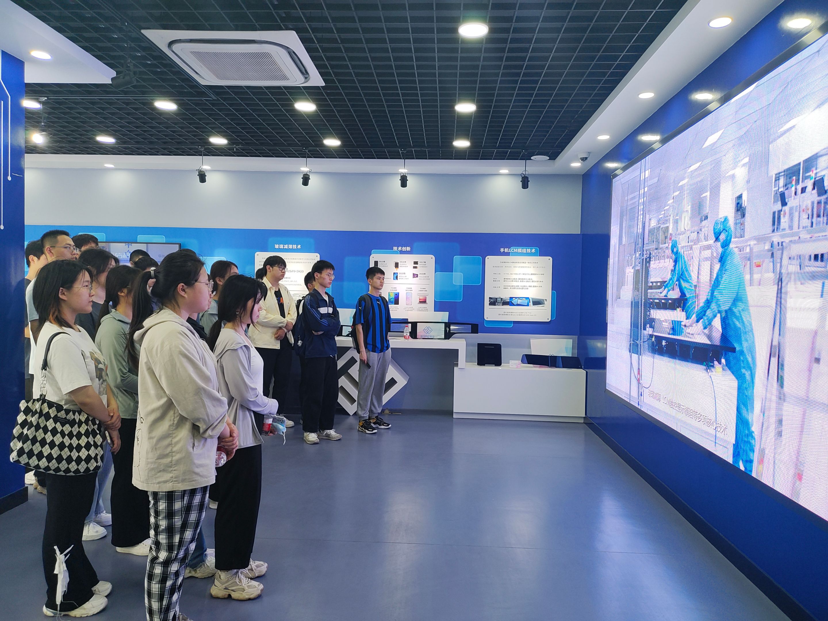 同学们首先到达芜湖长信科技股份有限公司进行参观。企业接待人员向同学们介绍企业发展历程及企业文化,带领参观事业部镀膜车间,详细介绍了企业产品的先进生产仪器及生产流程。在参观过程中,工作人员也对同学们的提问进行了耐心解答。