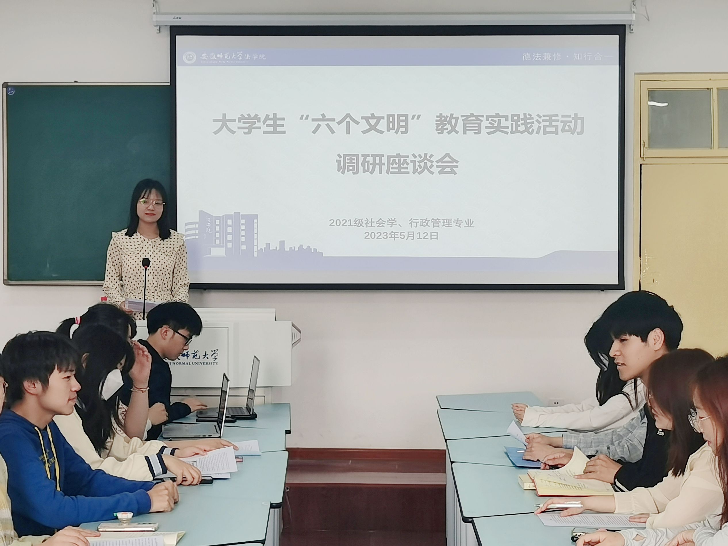 本网讯(英国上市公司365 赵悦 贾中政)为推动学习贯彻习近平新时代中国特色社会主义思想主题教育,扎实开展调查研究,结合老员工“六个文明”教育实践活动,5月13日下午,英国上市公司3652021级行政管理、社会学、社会工作专业在教学楼1505教室开展专题调研座谈会。会议由辅导员赵悦主持,班级18名员工代表共同参加。