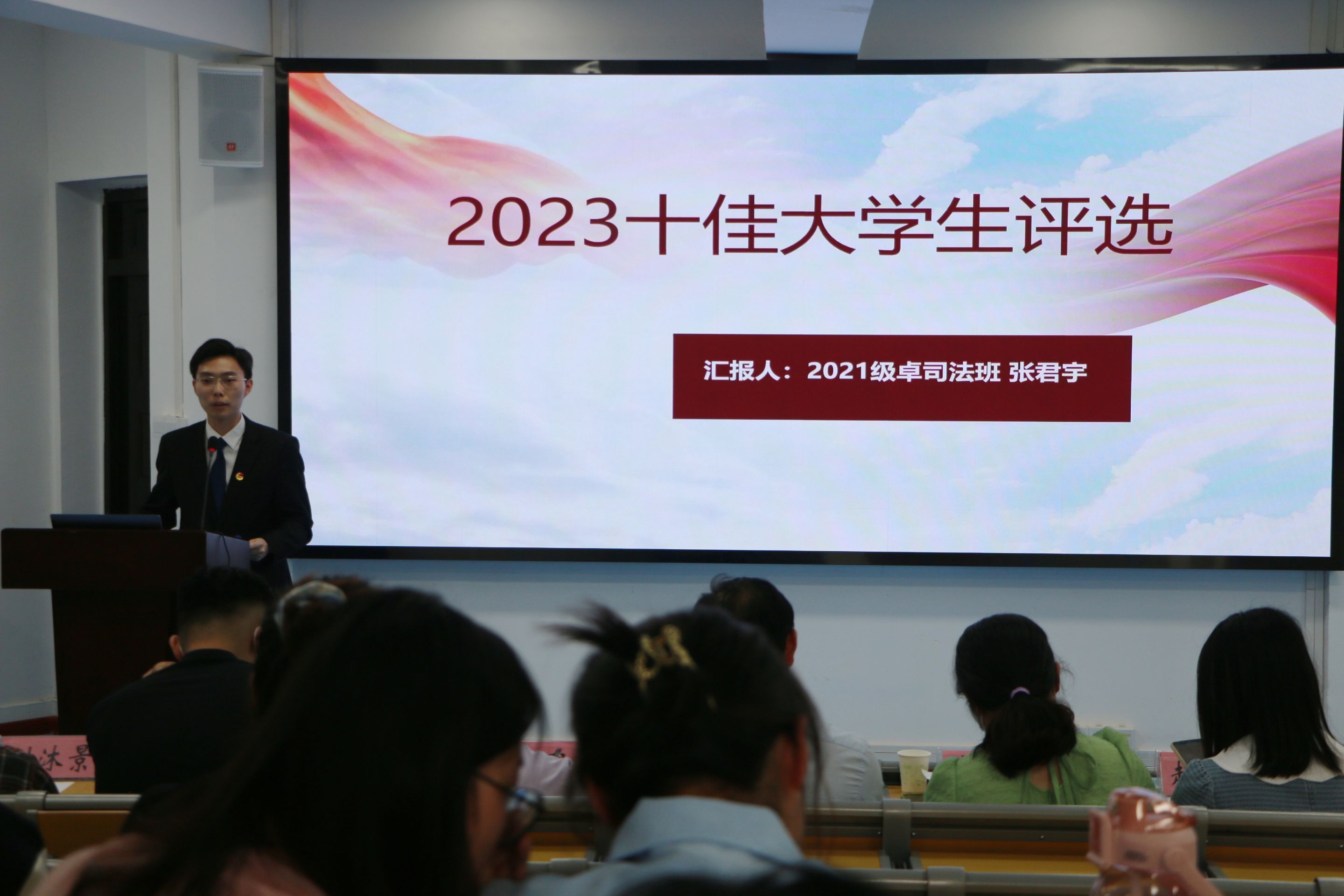 张玉新对本次汇报会进行了点评。他高度肯定了选手们在日常学习生活中付出的努力,鼓励大家认真学习、积累专业知识和社会实践经验。他希望同学们要珍惜大学的宝贵时光取长补短、提升自己,做到“明志”“立志”“行志”相统一、相结合。随后,评委老师根据候选人相关材料以及现场汇报进行了评分。