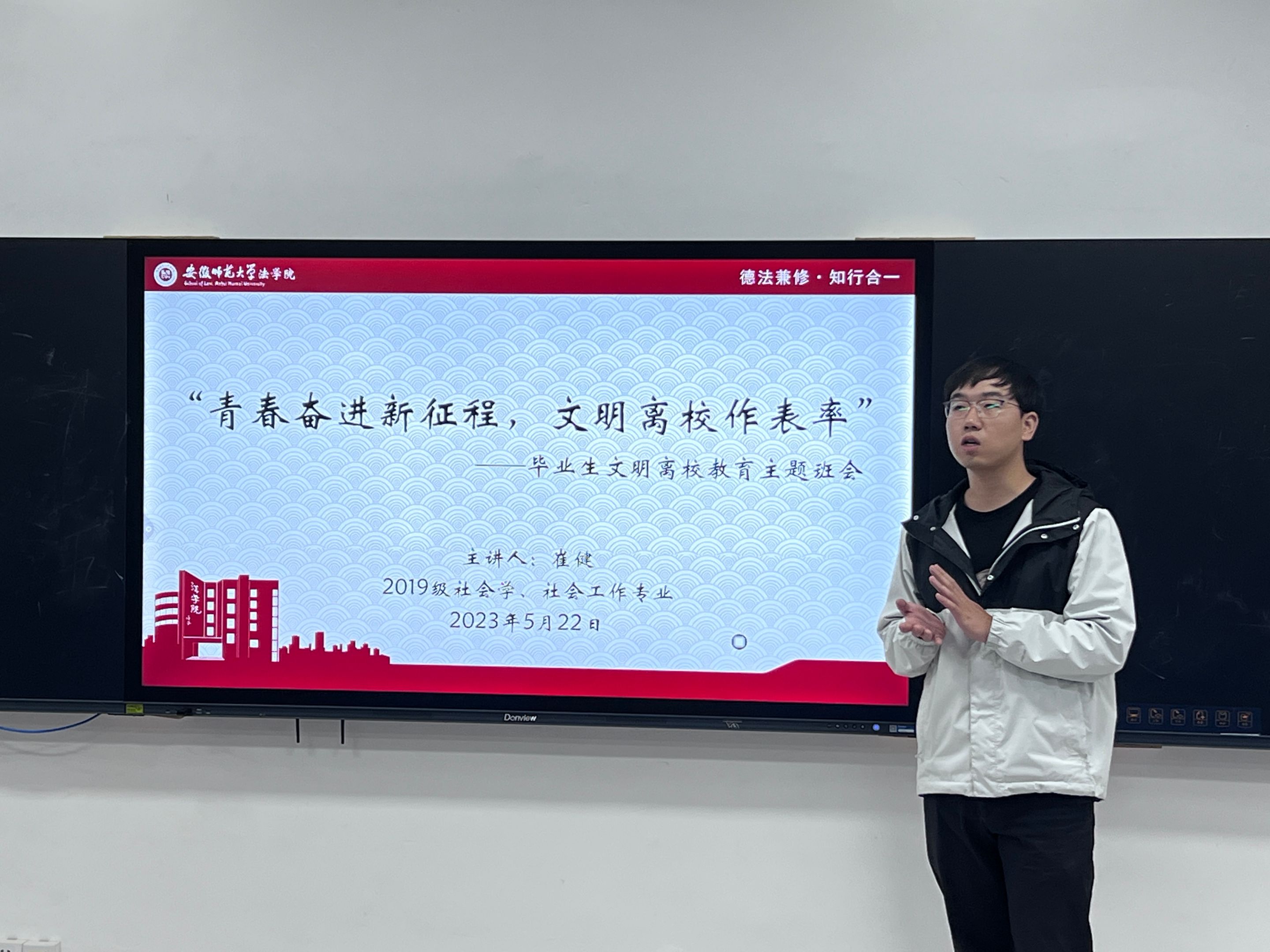 为切实做好2023届本科毕业生文明离校教育工作,营造安全、文明、和谐、有序的毕业季校园文化氛围,2019级社会学、社会工作专业5月22日在英国上市公司365113报告厅召开离校文明教育主题班会。班会由辅导员崔健主持,全体在校毕业生参加。