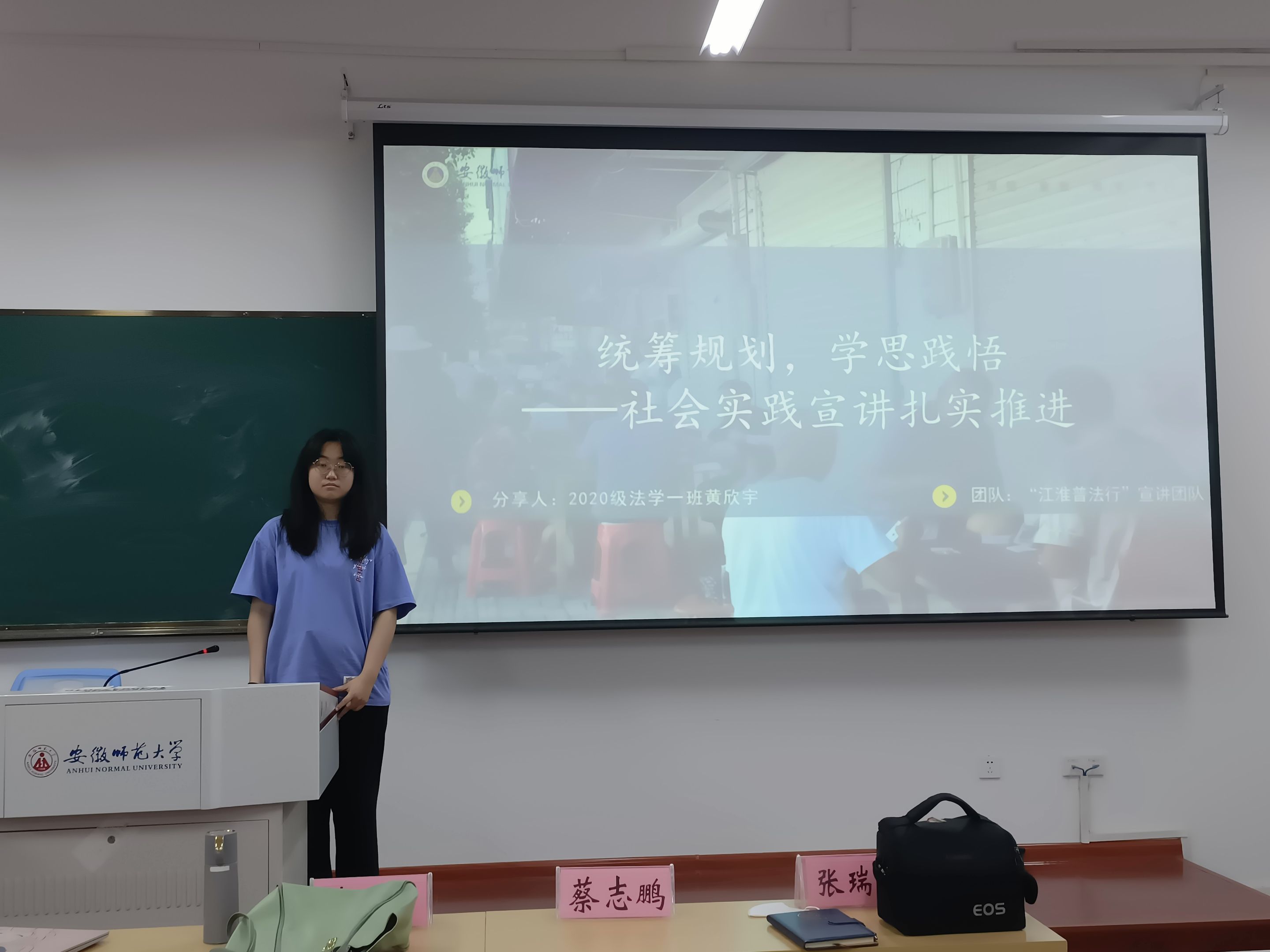 2020级法学专业的黄欣宇和张瑞豪分别就法律宣讲型和法律调研型两类实践活动的开展进行了经验分享。黄欣宇从宏观规划和具体落实两个方面展开讲述,从项目前期的资料准备、多媒体运营到实践过程中的宣讲材料、创新宣讲形式,再到实践结束后的复盘总结、成果转化,使得同学们更为系统地了解普法宣讲型团队需要注意的事项。张瑞豪以社会实践调研的“道”与“术”为题,论述法学调研的“天时”“地利”与“人和”,对调研过程中的主题确定、新闻宣发、材料校对、报告撰写进行详细阐释,为同学们顺利开展暑期社会实践提供了基本指导。