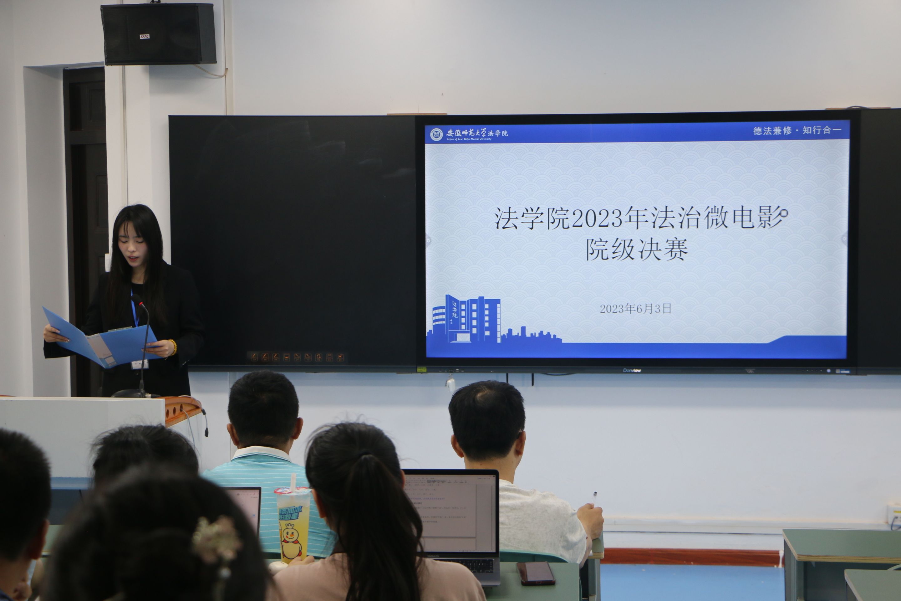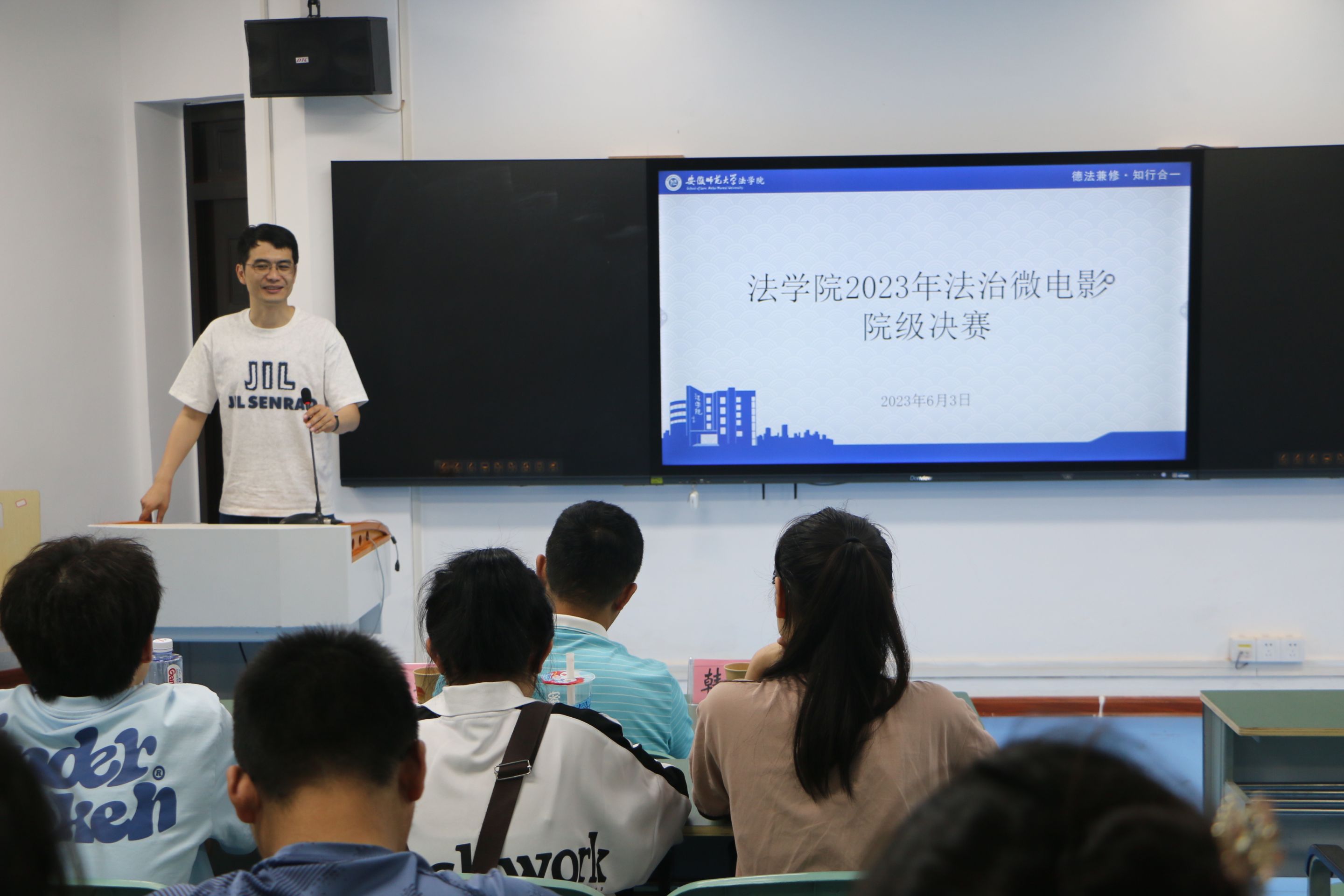 经过第一轮报名和评选,共有八份作品进入决赛。此次大赛以“法治初心,勇担使命”为主题,八份作品依次播放。每部作品都主题鲜明,以法学专业员工的视角展现制片人对于社会热点和日常生活的思考。《“贷”价》警示老员工远离校园贷;《让法治守护头顶上的安全》讲述有关高空抛物的故事;《网》聚焦生活中的网络暴力,提醒同学们学会运用法律武器保护自己的合法权益;《余温》强调司法工作者不能只是钻研法律条文,而是要扎根基层,深入到人民群众内部,真正做到以人民为中心;《初心》讲述初心不改,廉洁司法的故事;《三顾骗局》通过对反诈故事的讲述,警醒人们增强防范意识;《成年人》展现当今青年的迷茫、思考与成长;《新“拐”》介绍近些年新型拐骗手法,提醒我们增强对于此类事件的警惕意识。