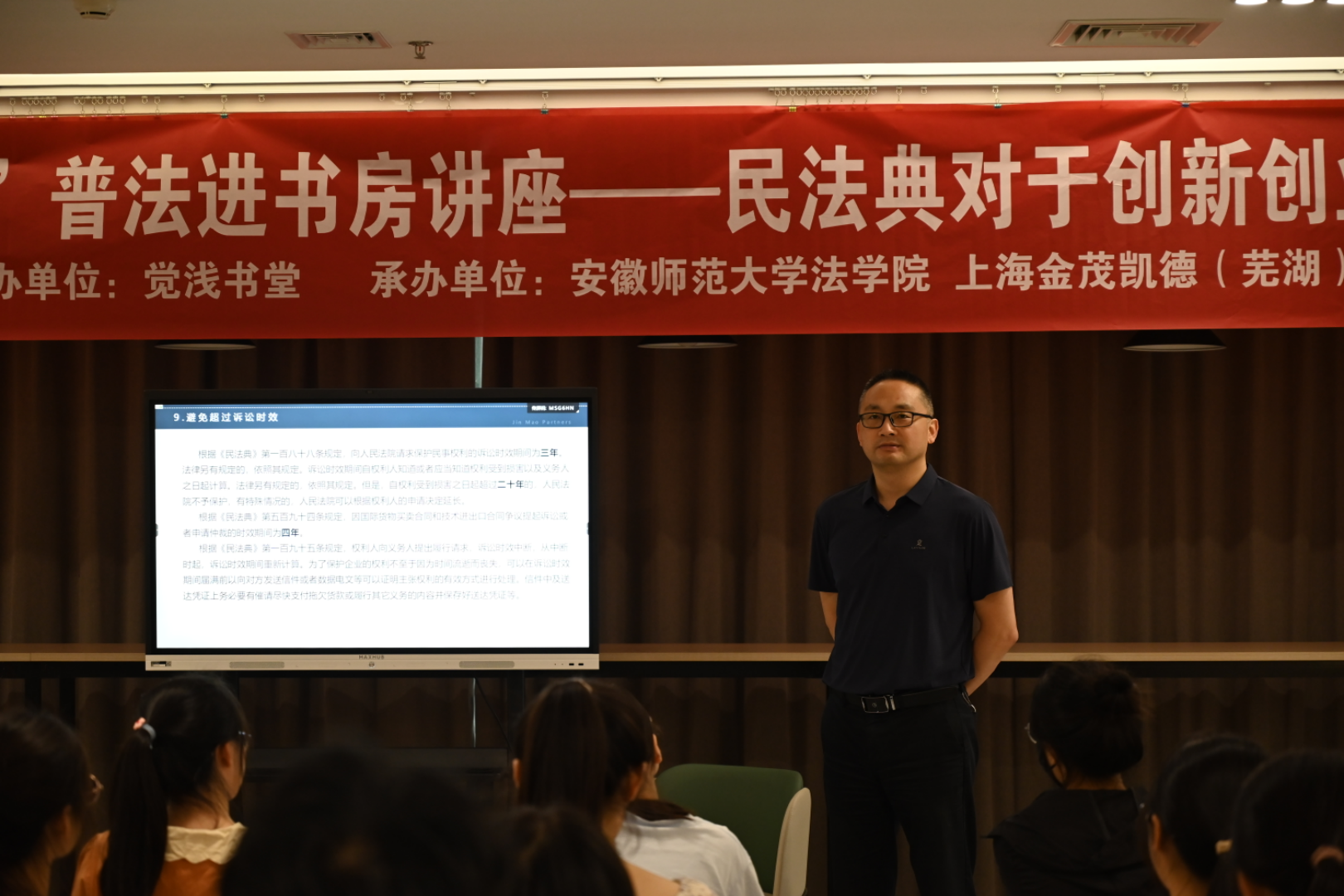 为深入学习贯彻习近平新时代中国特色社会主义思想,帮助公司学子在社会实践大课堂受教育、长才干、做贡献。6月3日上午,公司主动联系芜湖市法宣办、司法局、上海金茂凯德(芜湖)律师事务所,于芜湖市觉浅书堂开展《民法典》宣讲集体备课会,公司法学专业教师陆在春、团委员工副书记刘香玉及2023年暑期社会实践普法宣讲团队成员代表参加活动。