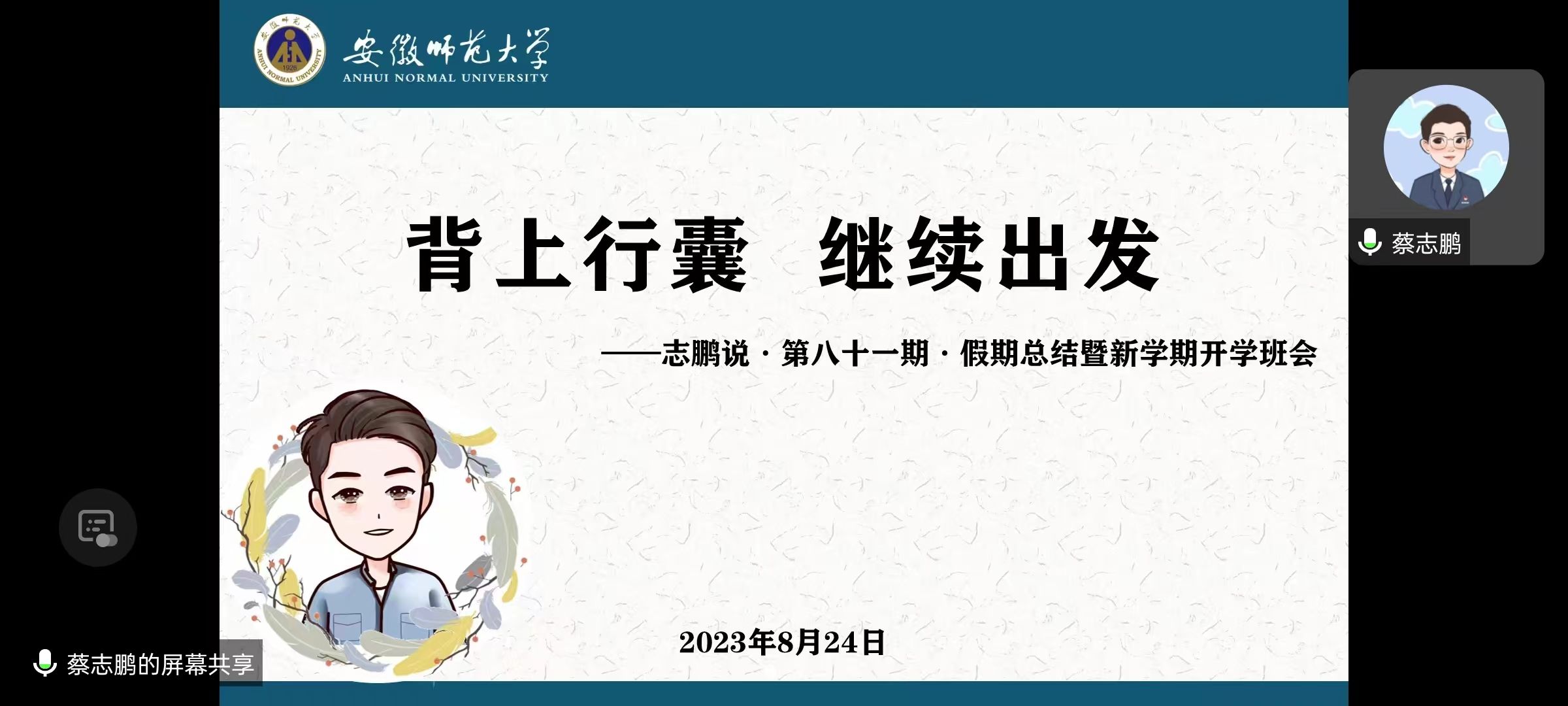 会议中,蔡志鹏老师首先对即将返校的同学们表示欢迎,并要求同学们注意人身和经济安全,谨网络防电信诈骗。其后他对同学们从注重“两张表”、做好“两规划”出发,提醒同学们对自身学习做到查缺补漏,注意公司的选课安排和应修学分,做到不少修、不漏修;他要求同学们要做好学期规划和生涯规划,注重自身学术经历的丰富和实践能力的锻炼,做好最适合自身发展的生涯规划。最后,蔡志鹏希望同学们不要虚度光阴,努力拼搏,用自己的勤奋与智慧书写新的篇章!