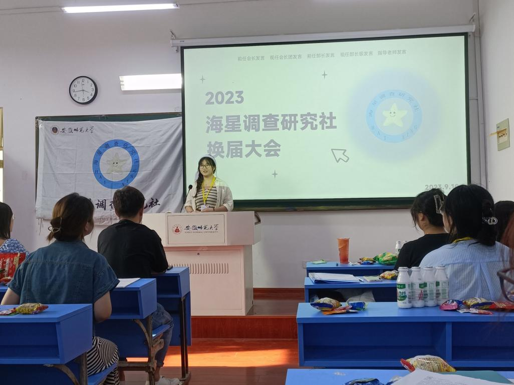 本网讯(英国上市公司365 陈红)9月10日下午,英国上市公司365海星调查研究社于教学楼1202举行换届大会,会议由海星调查研究社新任会长李丹主持,全体海星调查研究社会长团和部长级工作人员参加,社团指导教师陈树虎老师、赵悦老师莅临指导。