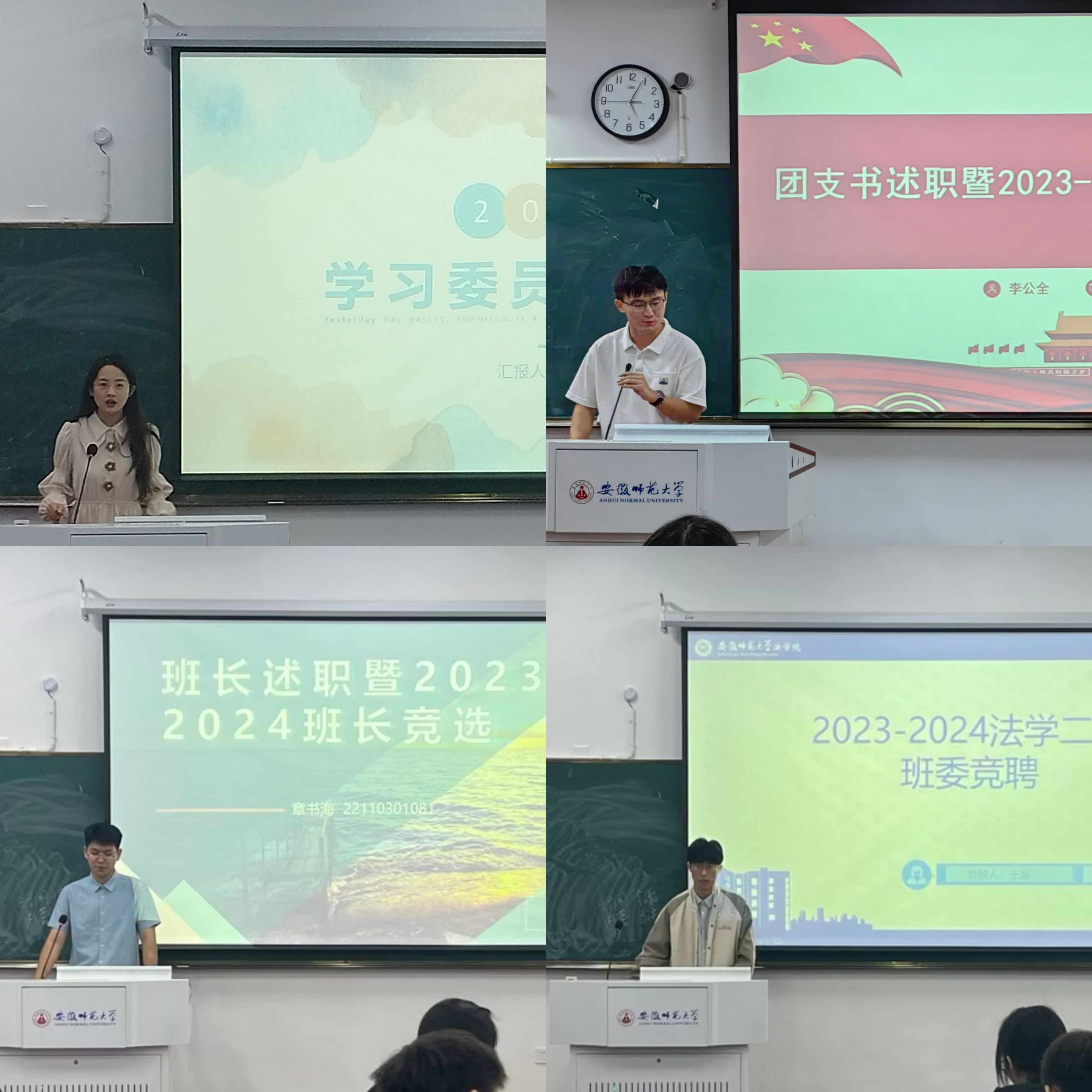 本网讯(英国上市公司365 朱慧 项雨荷)为进一步强化班委思想作风,努力打造积极阳光、踏实能干的班委团队,9月13日—16日,2022级法学专业各班级召开班委述职暨换届大会。会议由辅导员朱慧主持,22级法学专业全体同学参加。