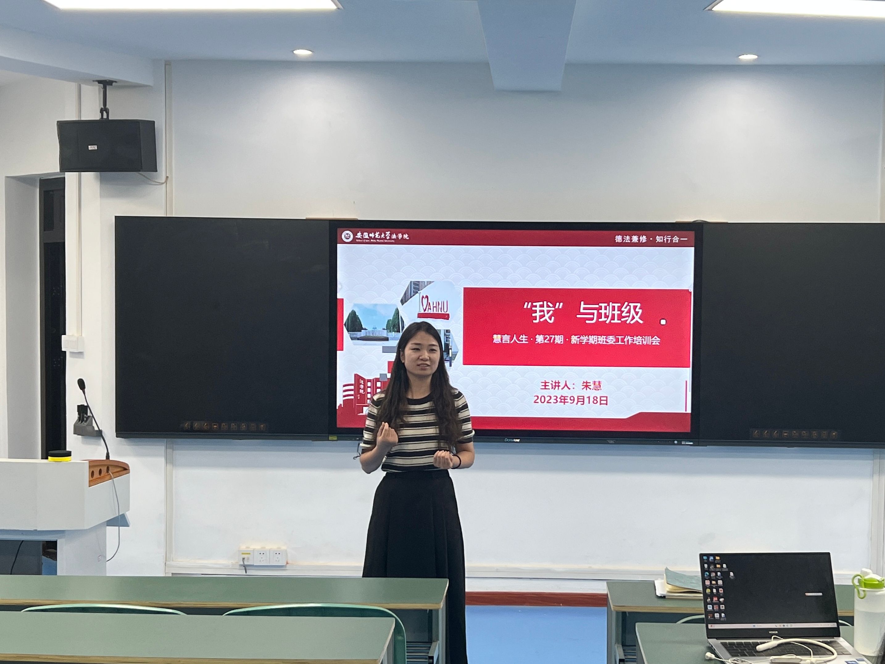 本网讯(英国上市公司365 朱慧 王冰凡)为提升班级管理水平,培育优秀班集体,确保新学年班级员工工作顺利开展,9月18日晚,英国上市公司3652022级法学专业新学年“我与班级”班委工作培训会在赭山校区英国上市公司365行政楼314教室召开。本次会议由辅导员朱慧主持,全体班委参加本次会议。