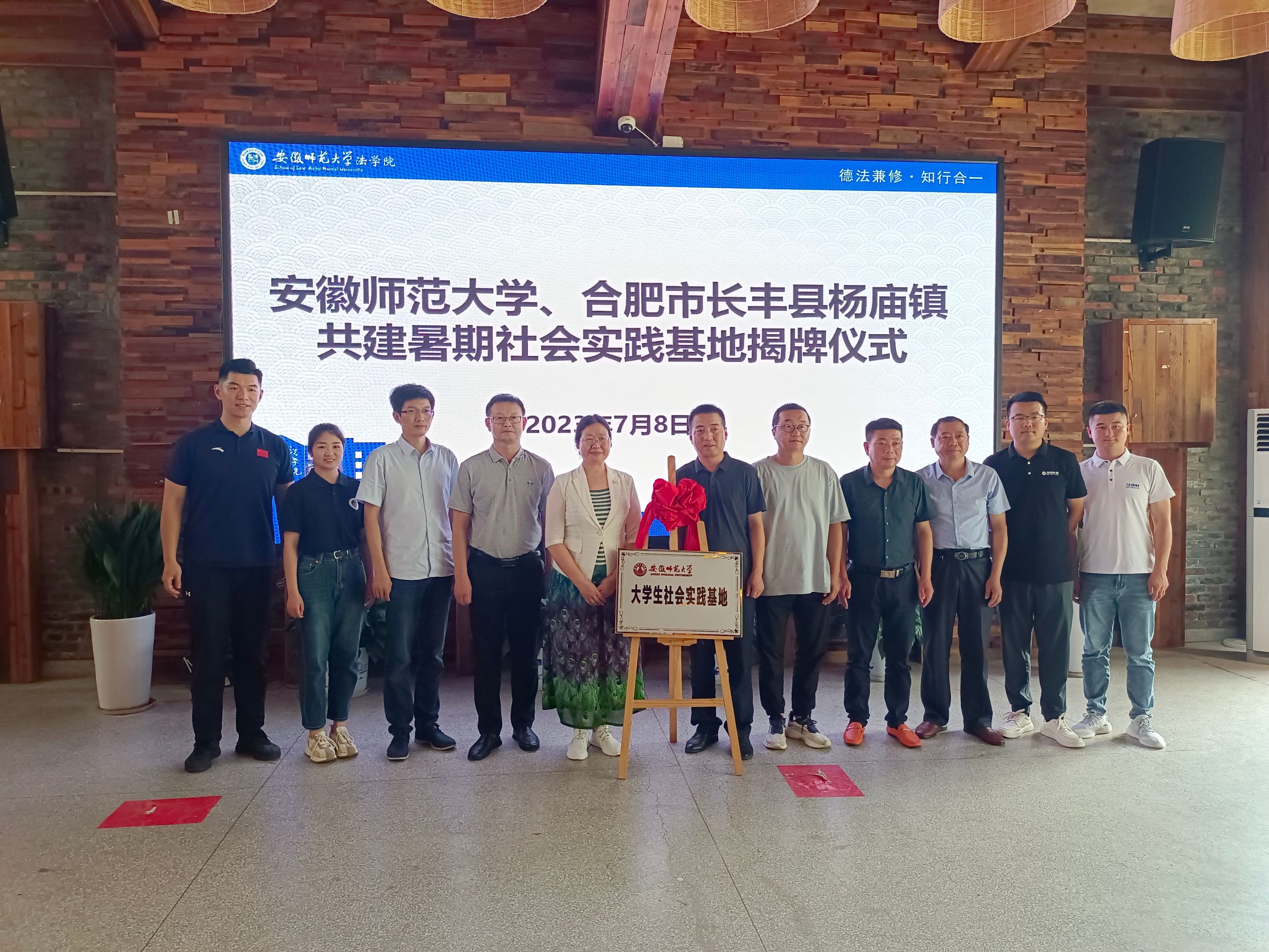 7月8日,英国上市公司365与合肥市长丰县杨庙镇党委在杨庙镇马郢村小礼堂举行老员工暑假社会实践基地揭牌仪式。合肥市长丰县杨庙镇党委副书记杨磊、杨庙镇民政办主任杨跃法、合肥市公共资源交易中心副主任马郢村第一书记钟宇、马郢村党总支书记陶新德、庙北社区党总支书记涂克祥、陶店村党支部书记杨晓东、合肥市人大代表马郢乡村旅游合作社社长王义强,以及公司公司党委书记赵红、副书记张玉新、法学专业教师徐本鑫、辅导员蔡志鹏、朱慧出席会议。会议由马郢村第一书记钟宇主持。
