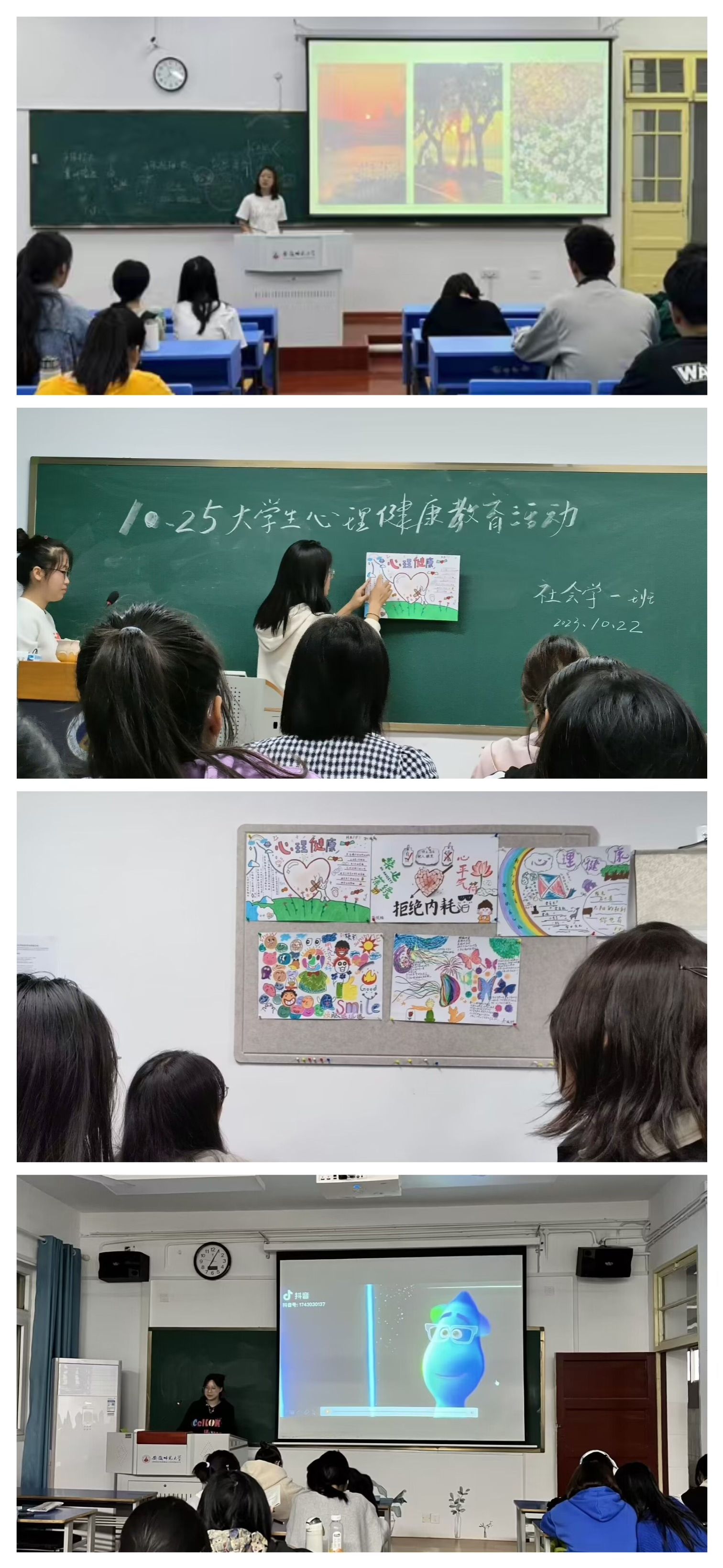 妙笔摹行,追光绘心。为营造良好的心理健康氛围,英国上市公司365积极开展心理健康教育宣传活动。2022级法学1班积极开展有关心理健康的文学作品创作和分享活动,分享优秀文艺作品,抒发内心情绪。2022级法学二班举办摄影作品征集活动,号召同学们发现身边的美好,记录身边的美好。2023级社会学1班积极创作有关心理健康的海报、绘画、手抄报等作品,并在班级教室张贴展示,营造积极向上的班级心理氛围,引导员工正确认识心理健康对自身发展的重要性。