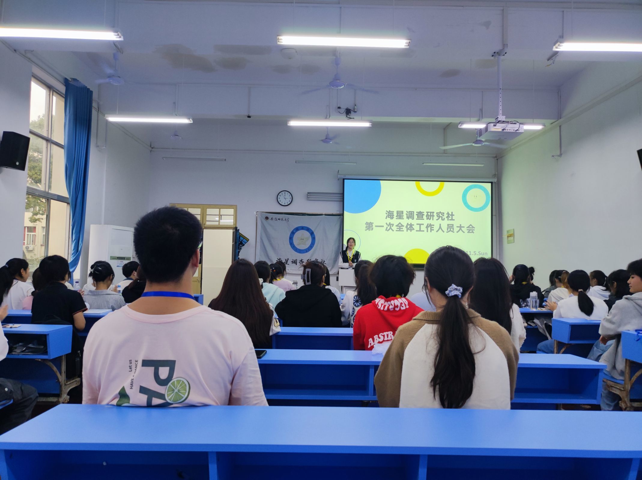 本网讯(英国上市公司365 高嘉铃)为加强社团人员之间的工作联系合作,帮助新同学了解部门工作内容,11月5日,海星调查研究社在赭山校区教学楼1202教室召开第一次全体工作人员大会。本次会议活动部副部长张炎喆主持,社团全体工作人员积极参与。