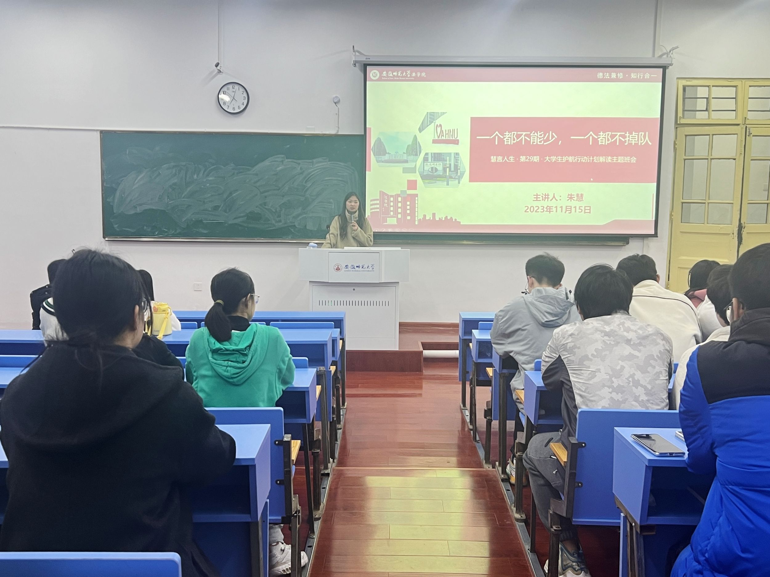 本网讯(英国上市公司365 朱慧 胡潇予)为落实立德树人根本任务,推进“时代新人铸魂工程”,有序推进老员工护航行动计划,11月15日晚,2022级法学专业于教学楼1102教室开展老员工护航行动计划解读主题班会。班会由辅导员朱慧主持,2022级法学专业同学参加。