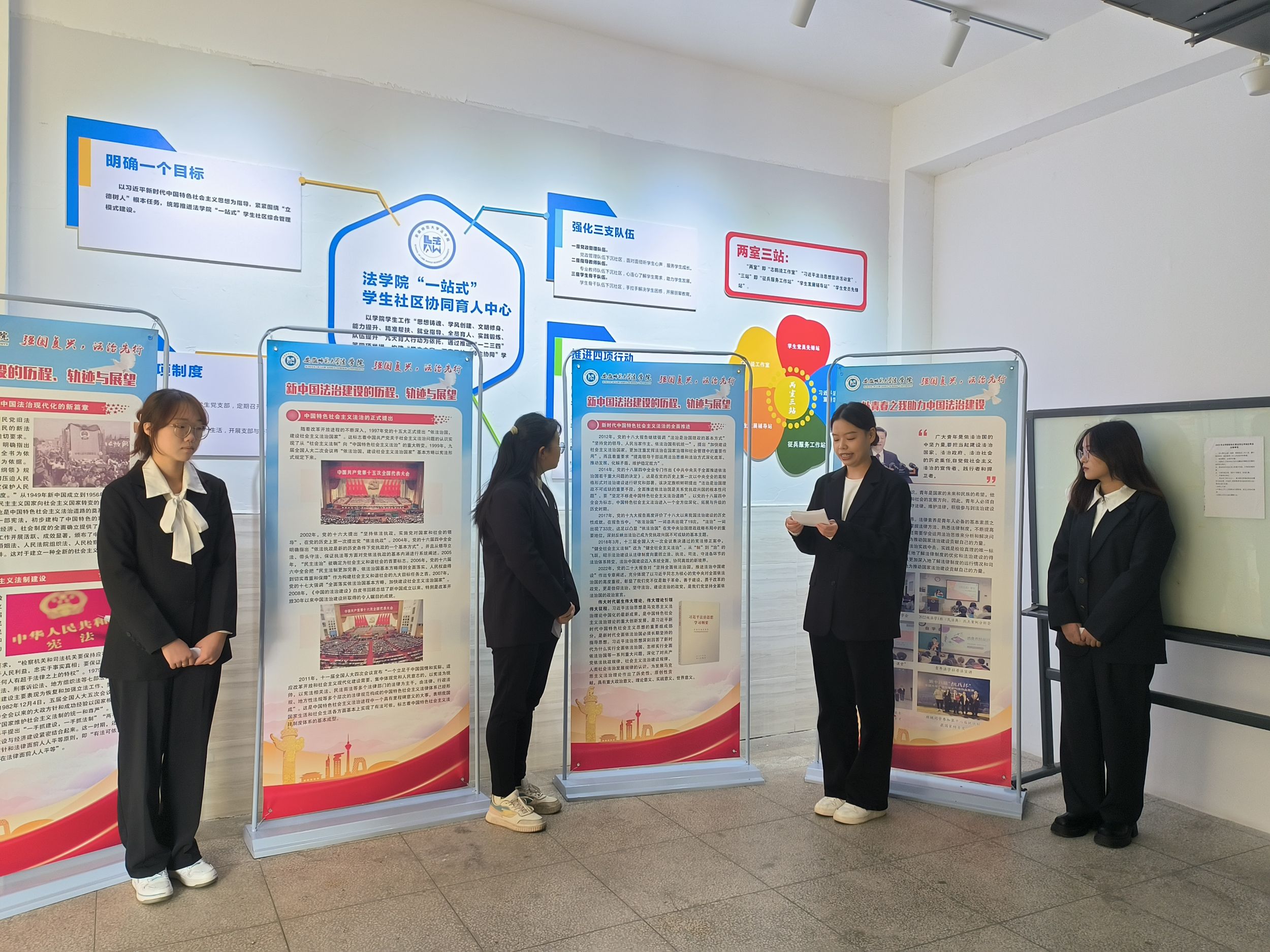 活动现场,班级宣讲员周鑫宇、张雨琦、孔吉祥、李甜甜为同学们做法治宣讲,介绍了我国法治历史上从“有法可依、有法必依、执法必严、违法必究”到“科学立法、严格执法、公正司法、全民守法”的社会主义法治十六字方针的法治理念内涵提升,带领全体团员回顾了新中国法治发展的渐进历程,帮助同学们梳理新中国法治建设的伟大成就和宝贵经验。
