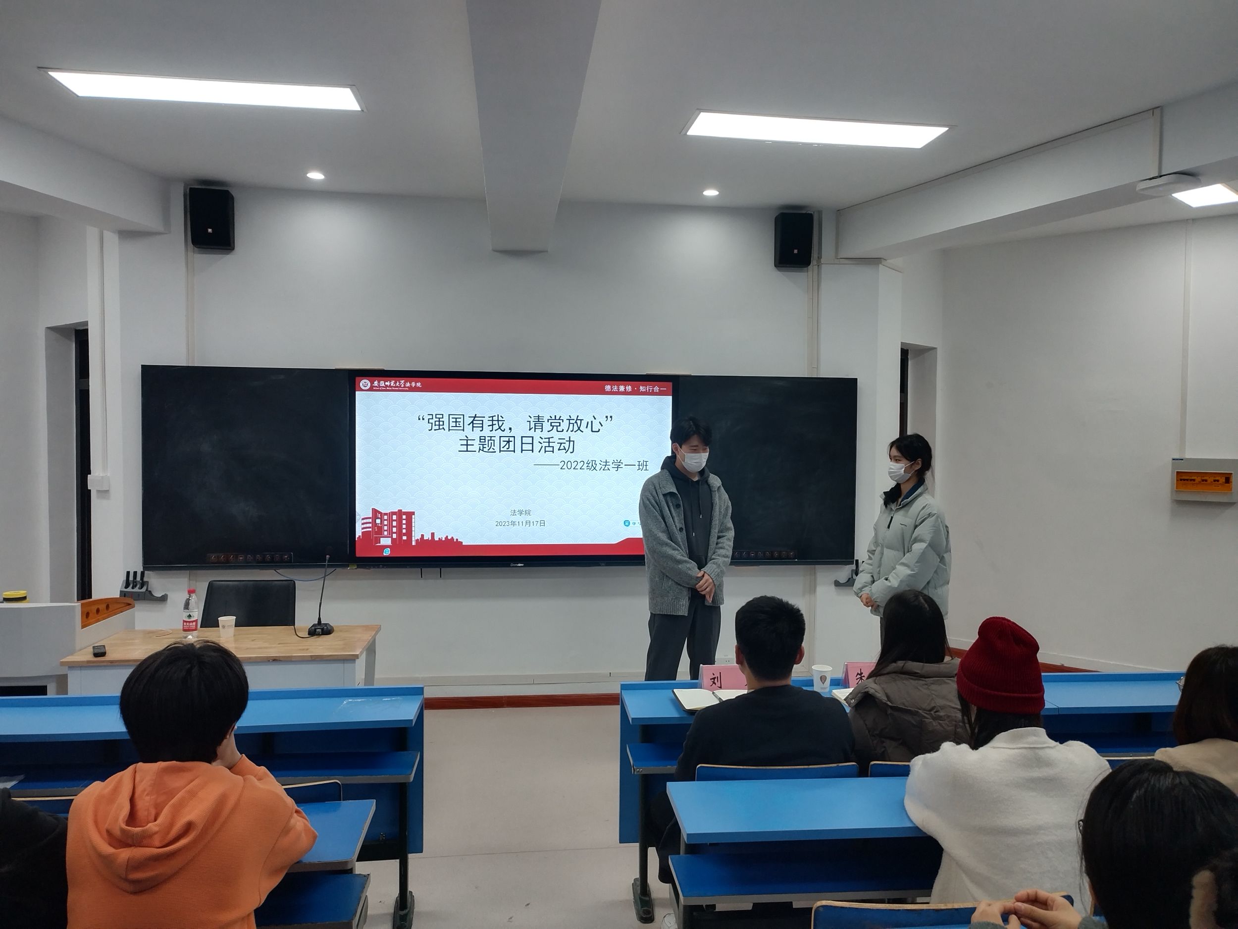 本网讯(英国上市公司365 朱慧 金莹)为深入学习宣传贯彻党的二十大精神,教育引导广大青年听党话、感党恩、跟党走,11月17日下午,英国上市公司3652022级法学专业一班在英国上市公司365“一站式”员工社区113阶梯教室开展“强国有我,请党放心”主题团日活动。本次活动校团委员工副书记刘岩、辅导员朱慧列席,团支书赖嘉怡主持,班级全体团员参加。