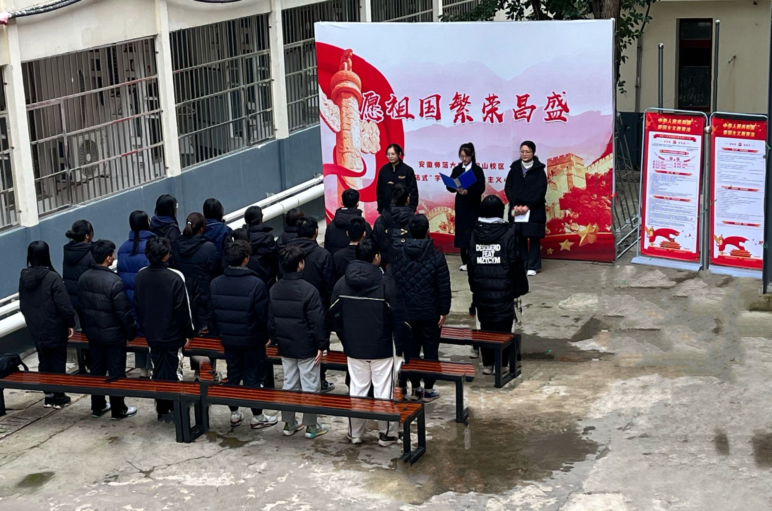 下午14时许,在天门山校区“一站式”员工社区爱国主义教育小院开展“勿忘国耻,圆梦中华”为主题的主题团日活动。活动在庄严的国歌声中开始。接着,同学们为在南京大屠杀中逝去的同胞默哀,缅怀先辈,牢记侵略战争给中国人民乃至世界人民造成的深重灾难,宣示牢记历史、不忘过去、珍爱和平、开创未来的坚定立场。最后,由2023级社会学班级团支书马宏奕讲授“勿忘国耻,圆梦中华”主题微团课。听完马宏奕同学饱含情感的讲授,同学们表示,要珍惜今天来之不易的和平,铭记历史,缅怀革命先烈,传承革命精神,并将其转化为敢于担当,攻坚克难的精神动力,奋发进取,展现新作为、作出新贡献。