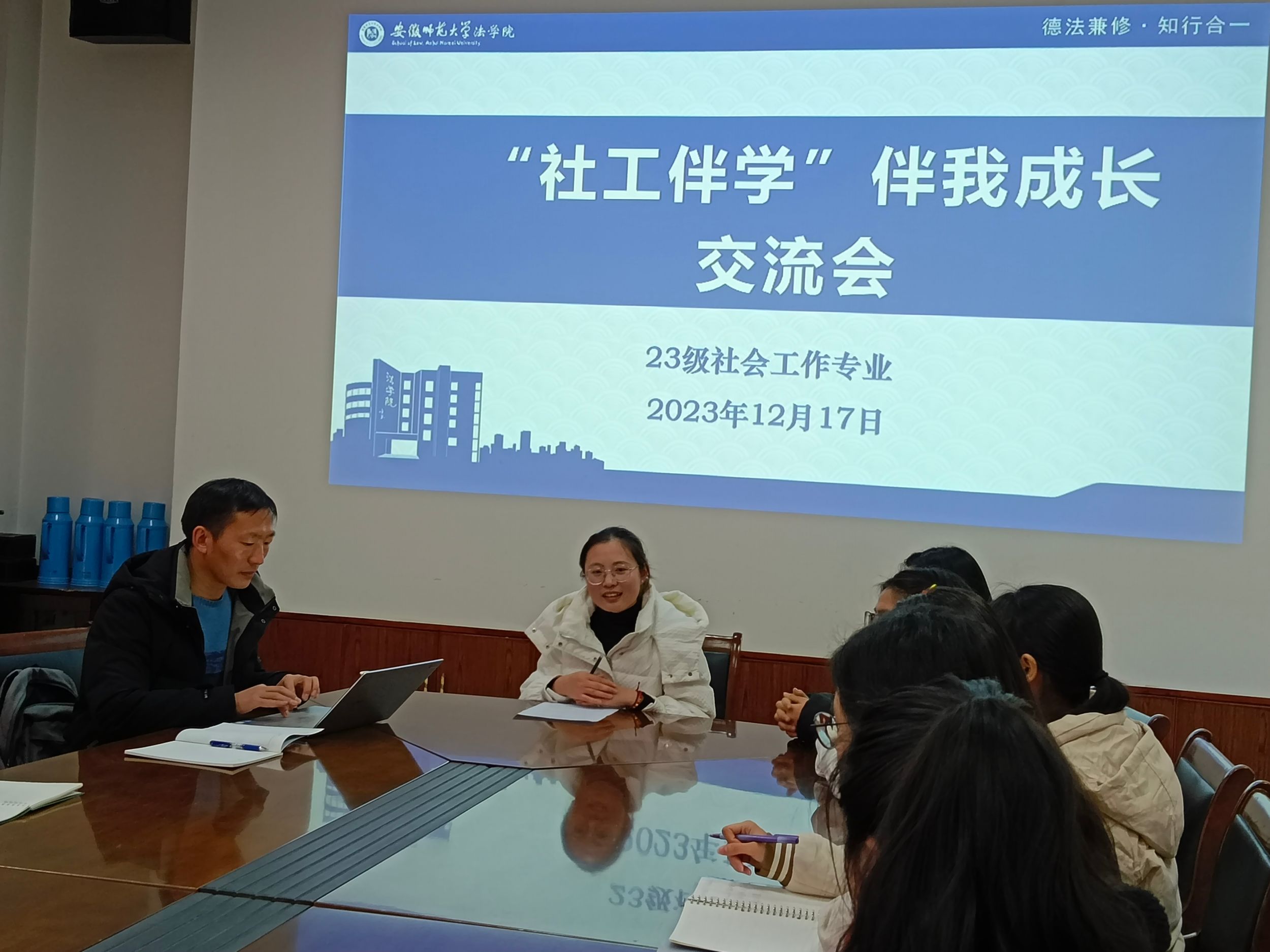 关注新生感受,持续优化改进。本学期“社工伴学”五个小组共开展30余场陪伴活动。12月17日,王杰老师走进天门山校区开展“社工伴学”活动评估交流会。活动由辅导员刘香玉主持,两位老师认真听取了大一新生参与“社工伴学”的感受、收获有和建议。同学们抒发了自己切身的感受和体悟,表达对“社工伴学”这一温暖项目的感谢。她们纷纷表示,活动虽已结束,但是“群还在”,学长学姐的关心依然存在,“社工伴学”对同学们的陪伴服务仍在。学长学姐们在群中有问必答,积极回复,让初入大学、面对各项问题迷茫的大一同学倍感温暖。王杰对大三同学认真开展专业活动给予赞扬,他表示明年的“社工伴学”活动将延长周期,采取更有效、更生动的方式来为同学们答疑解惑。