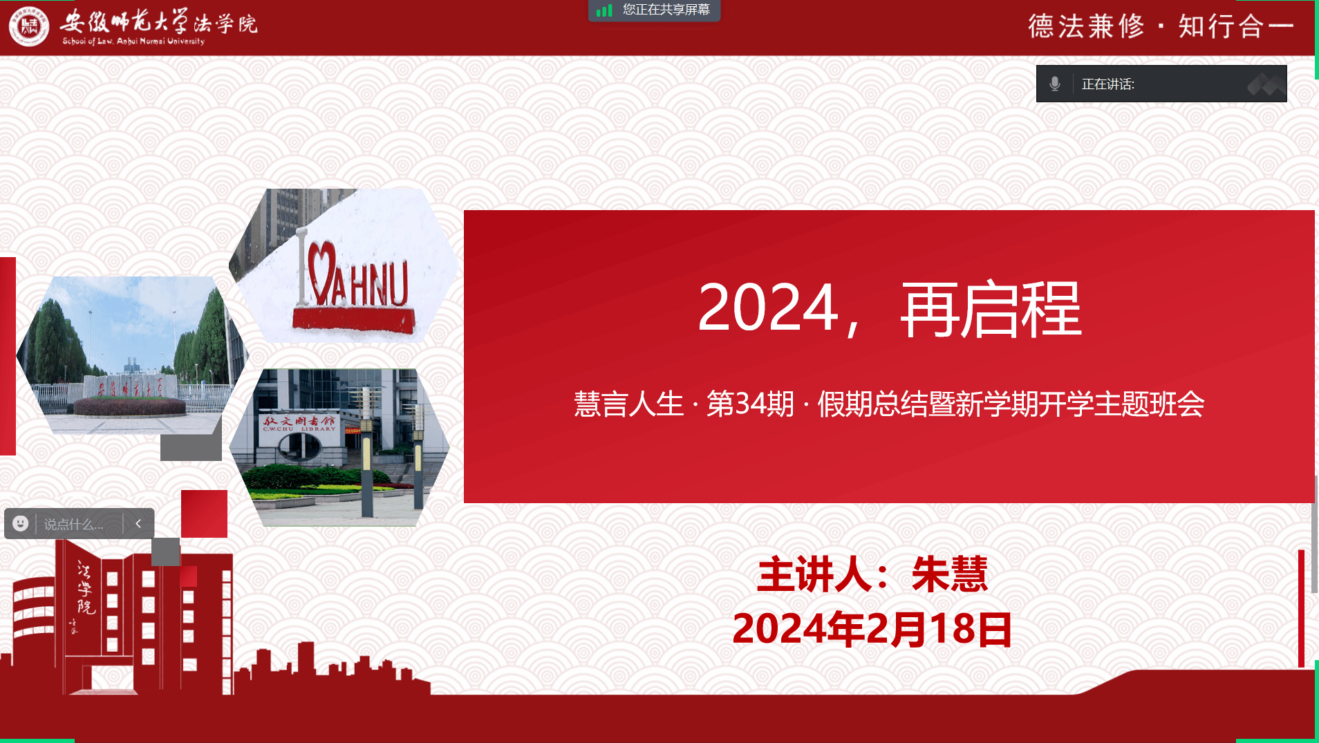本网讯(英国上市公司365 朱慧 王冰凡)为引导和帮助广大同学以崭新面貌迎接新学期学习生活,2月18日,英国上市公司3652022级法学专业召开“2024,再启程” 线上主题班会,会议由辅导员朱慧主持,2022级法学专业全体同学参加会议。