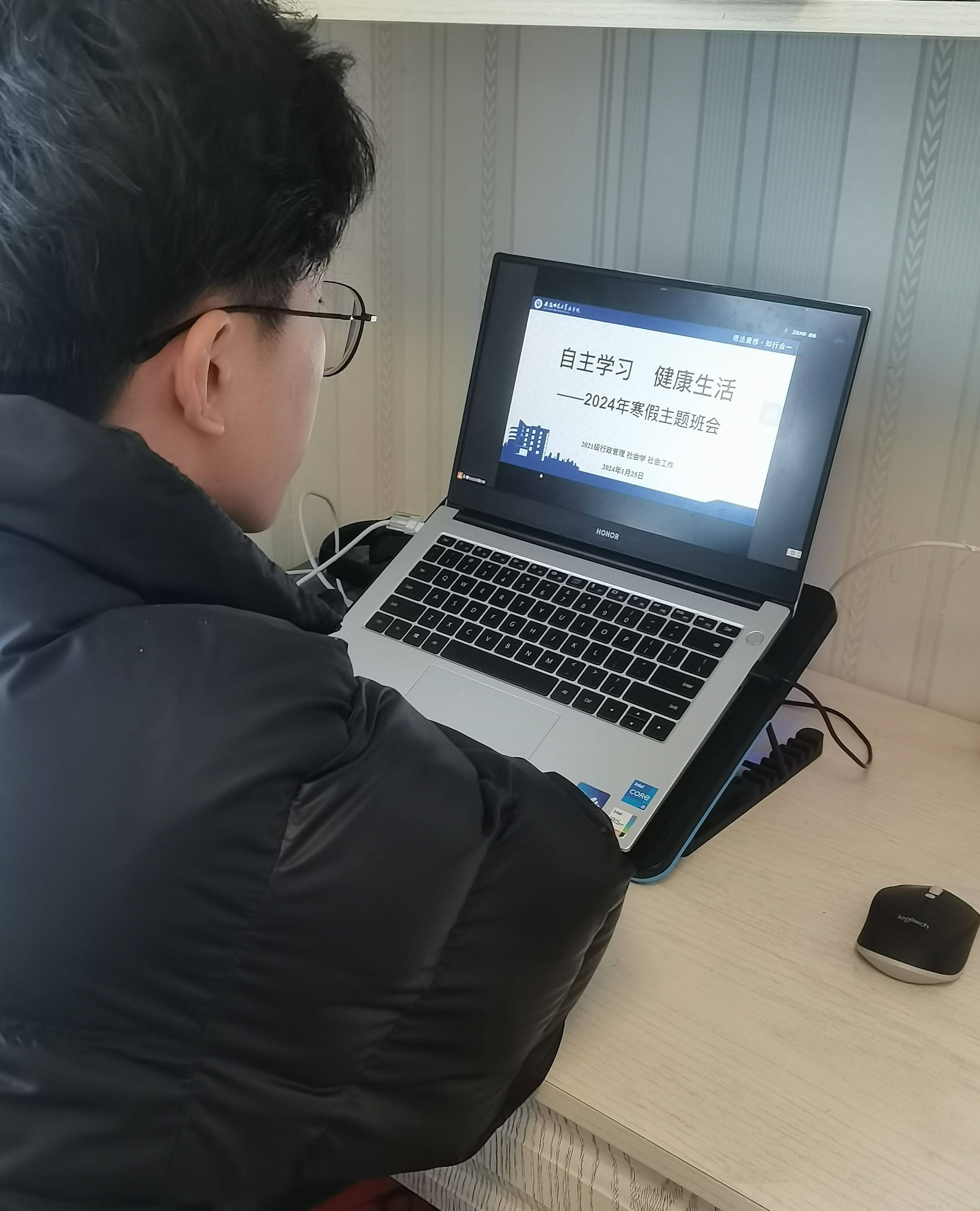 赵悦从安全健康、学习提升、就业准备三个方面跟同学布置了寒假努力方向。提到近期地震灾情,赵悦首先带领大家共同观看地震自救十条常识的视频,提醒大家注意交通安全、人身安全和公共安全等。会上,赵悦再次提醒三个专业全体同学完成假期离校前布置的“寒假作业”,鼓励课程不及格的同学们查缺补漏,由学习委员组织班级同学开展一对一学业帮扶,由组织委员深入摸排员工就业意向并发布收集就业意向调查表。最后,赵悦提前给大家拜了早年,祝同学们2024年新春快乐,龙行龘龘,前程朤朤!